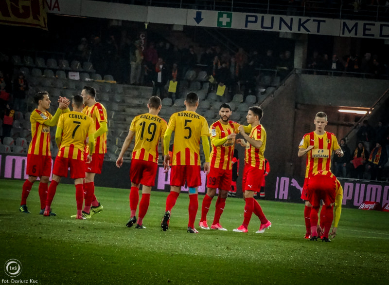 Korona: 1. Maciej Gostomski - 21. Łukasz Kosakiewicz, 26. Bartosz Rymaniak, 5. Adnan Kovačević, 19. Ken Kallaste - 8. Mateusz Możdżeń, 14. Jakub Żubrowski, 6. Goran Cvijanovič (54, 32. Radek Dejmek), 7. Marcin Cebula - 9. Nika Kaczarawa (82, 23. Elhadji Pape Diaw), 89. Elia Soriano (69, 27. Jacek Kiełb).