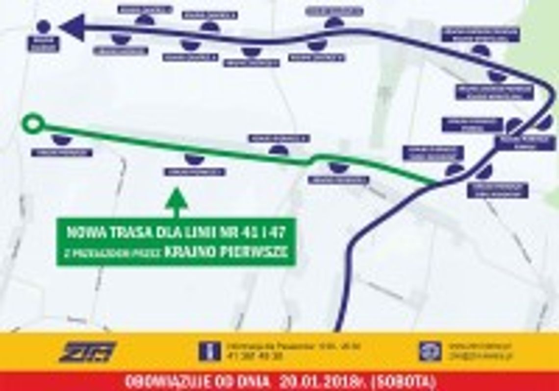 W sobotę, 20 stycznia, zmienił się także rozkład dwóch innych linii nr 41 i 47. Autobusy linii nr 41 w dni robocze oraz linii nr 47 w soboty i niedziele, kursować będą do miejscowości Krajno Zagórze z dodatkowym przejazdem w dwóch kierunkach przez Krajno Pierwsze. Dodatkowo kurs linii nr 47 w dni robocze, z os. Ślichowice do Krajna zostanie przesunięty z godziny 15:10 na godzinę 15:20.