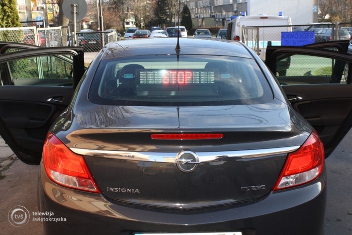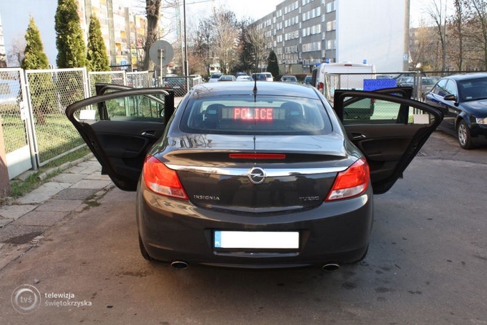 Wczoraj skarżyscy policjanci otrzymali nowy nieoznakowany radiowóz. Opel Insygnia wyposażony jest w dwu-litrowy silnik turbodoładowany o mocy 220 KM. Prędkość maksymalna wynosi 242 km/h.