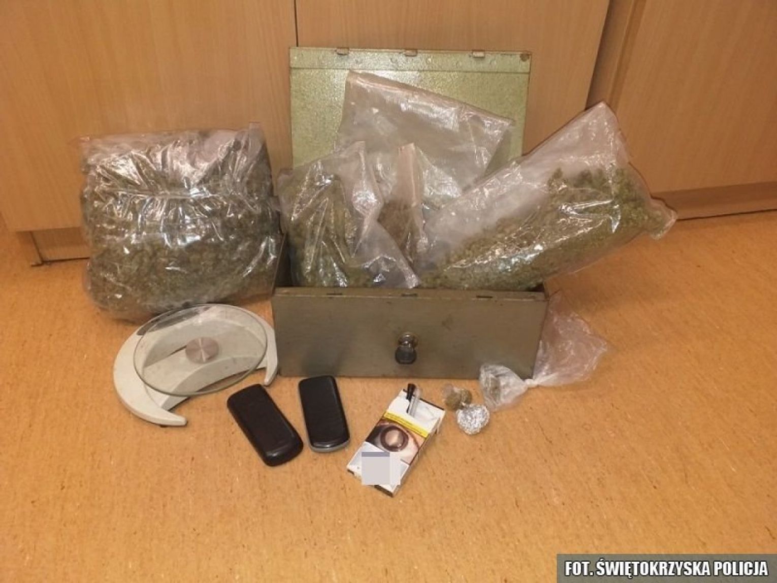 Dodatkowo 44 – latek posiadał wagę elektroniczną, telefony komórkowe i porcję suszu roślinnego.