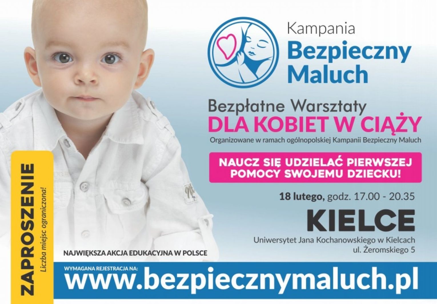 Kampania Bezpieczny Maluch to najszersza w Polsce akcja skierowana do kobiet w ciąży i rodziców małych dzieci mająca na celu edukację z zakresu bezpieczeństwa i zdrowego rozwoju dziecka.