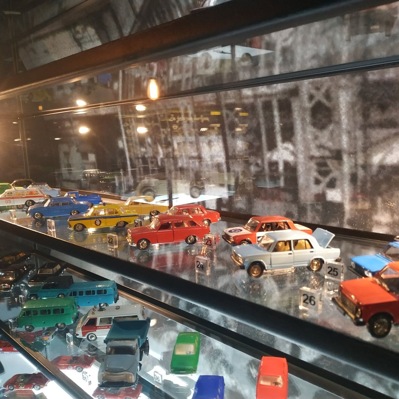 Wystawa przedstawia historię motoryzacji ,od pierwszych automobili z końca XIX wieku do bardziej współczesnych samochodów z lat 80-tych.