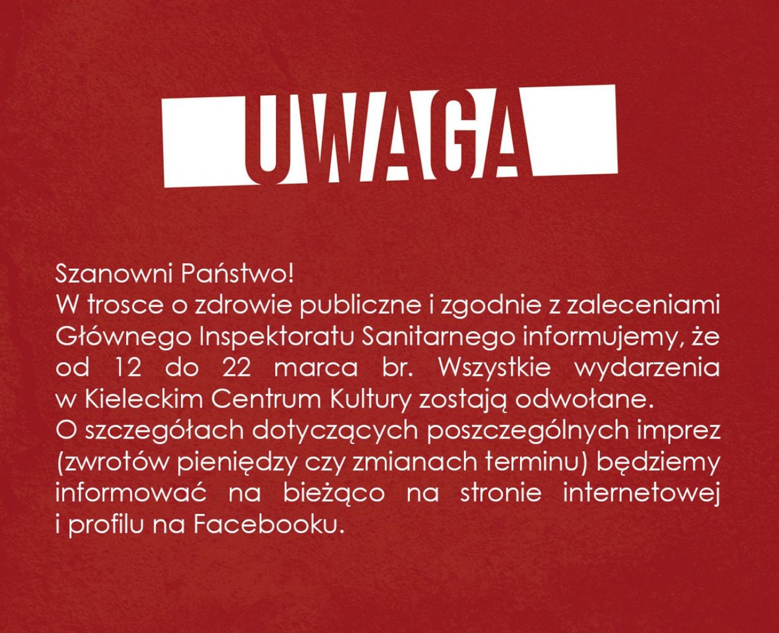 wydarzenia w Kieleckim Centrum Kultury zostają odwołane.