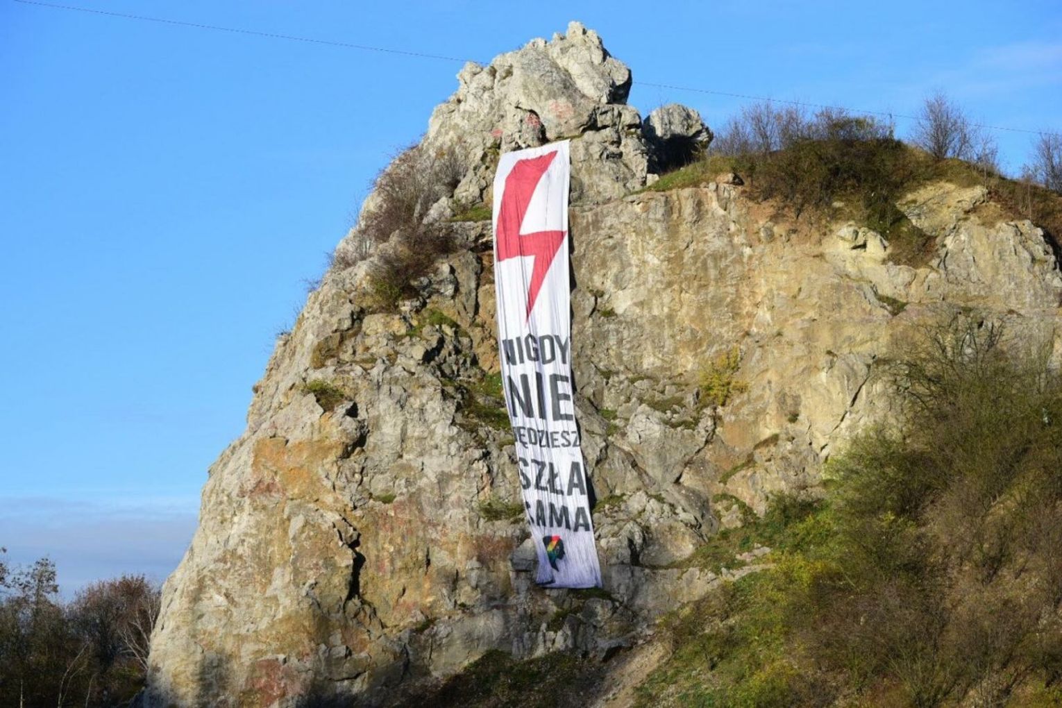 Rano w niedzielę 22 listopada na skałach zawisł ważący 17 kilogramów olbrzymi banner popierający protest kobiet przeciwko zaostrzeniu przepisów aborcyjnych.