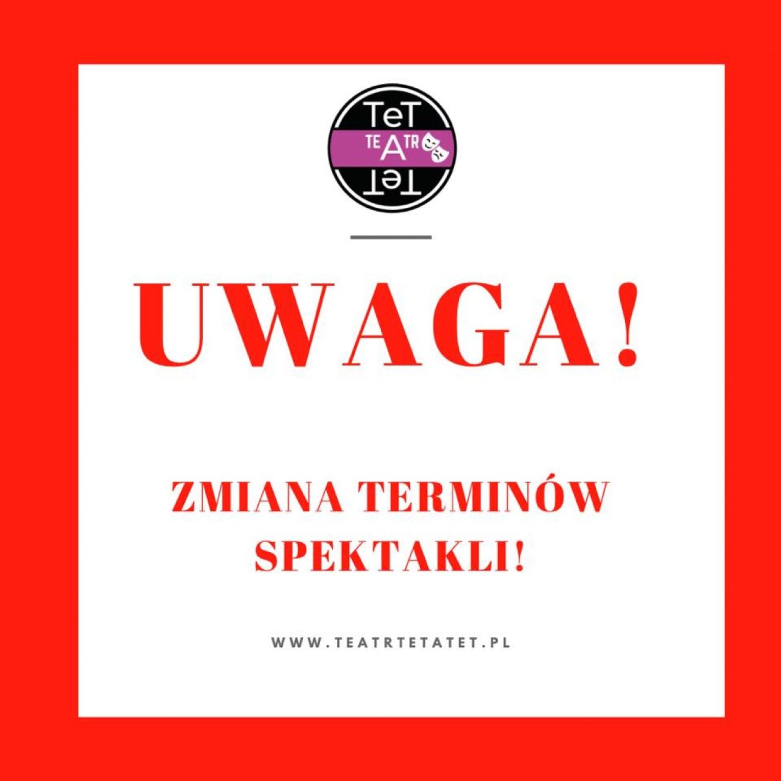 Wszystkie zaplanowane spektakle odbędą się w późniejszym terminie, po ponownym otwarciu teatrów. Wkrótce podamy konkretne terminy ich grania. Jednocześnie pragniemy zaznaczyć, że wszystkie bilety zachowują swoją ważność!"