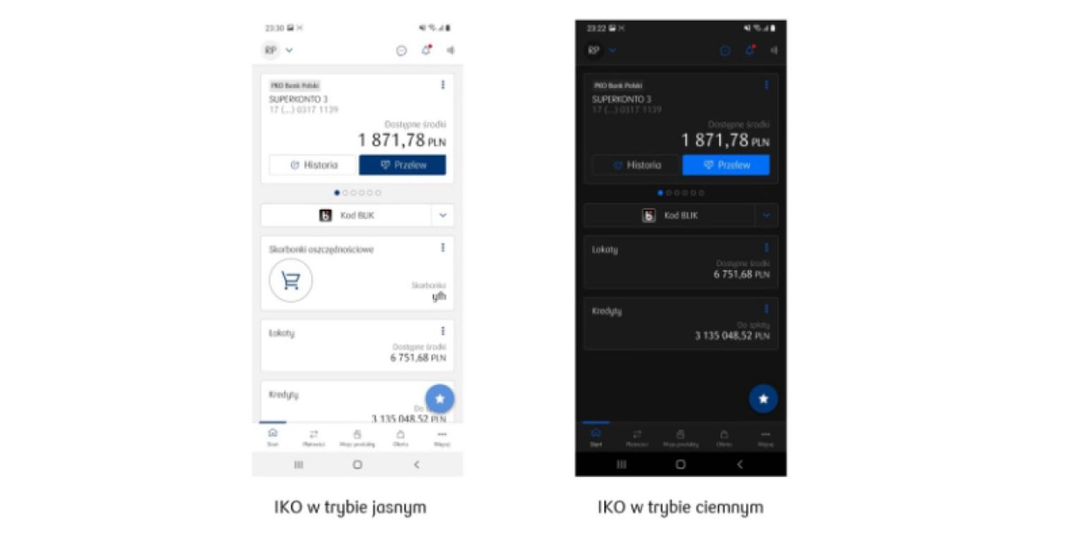 Najnowszym udogodnieniem jest w IKO tryb ciemny (dark mode). To możliwość zmiany sposobu wyświetlania ekranu z jasnego na ciemny. Tryb ciemny ogranicza ilość światła emitowanego przez telefon przy zachowaniu dobrej jakości kontrastu i czytelności prezentowanych danych. W przypadku niektórych smartfonów może przyczyniać się również do oszczędzania baterii. Ciemny lub jasny motyw użytkownicy IKO mogą włączyć na stałe lub wybrać tryb automatyczny, który zmienia się zgodnie z ustawieniami w telefonie. Funkcja dostępna jest dla użytkowników korzystających ze smartfonów z systemem Android, a w najbliższym czasie będzie też wprowadzona dla urządzeń z systemem iOS.