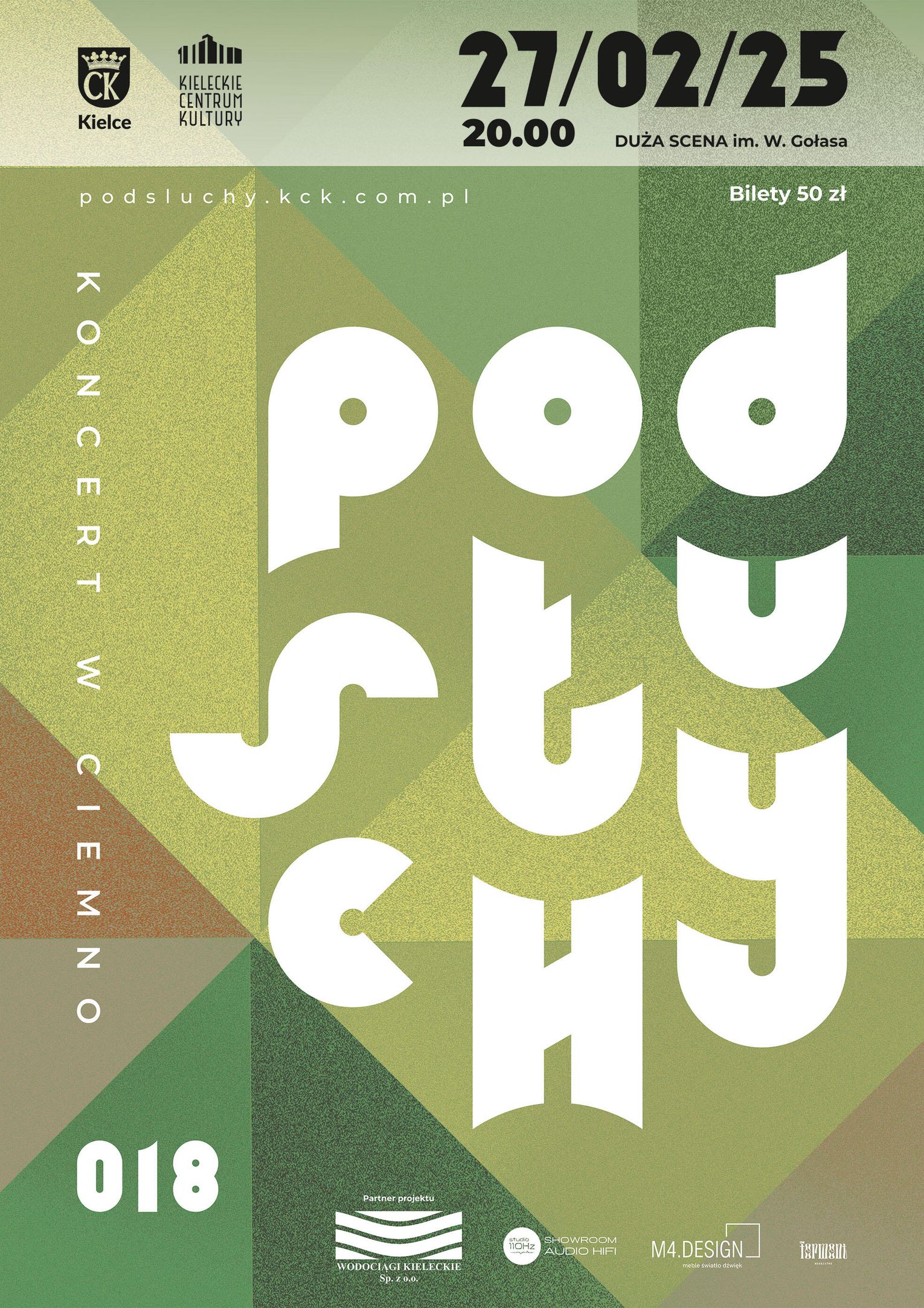 Z głośnika rozbrzmiewa Twoja ulubiona piosenka, a dłoń rozgrzewa kubek ciepłej herbaty. Tym właśnie są „Podsłuchy”. Cykl wydarzeń, które dzięki nietuzinkowej scenografii, harmonii dźwięku ze światłem, poczucia bliskości, jaką zapewni oglądanie artysty będącego na wyciągniecie ręki, zamienią Dużą Scenę KCK w bezpieczną, muzyczną przystań. Brzmi tajemniczo?
