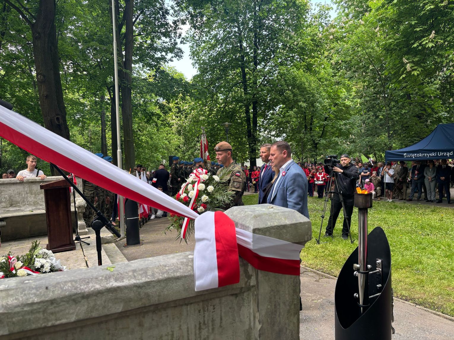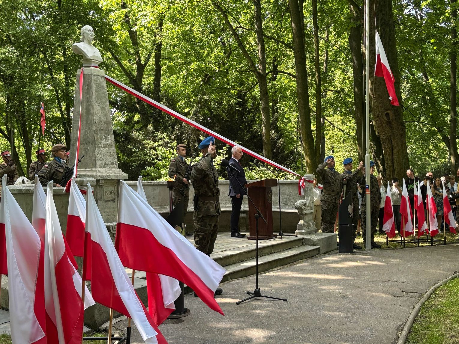 Kwiaty pod pomnikiem Stanisława Staszica złożyli: delegacja miasta Kielce, województwa, posłowie, stowarzyszenia, świętokrzyscy działacze różnych partii politycznych. Były także świętokrzyskie delegację służb mundurowych.
