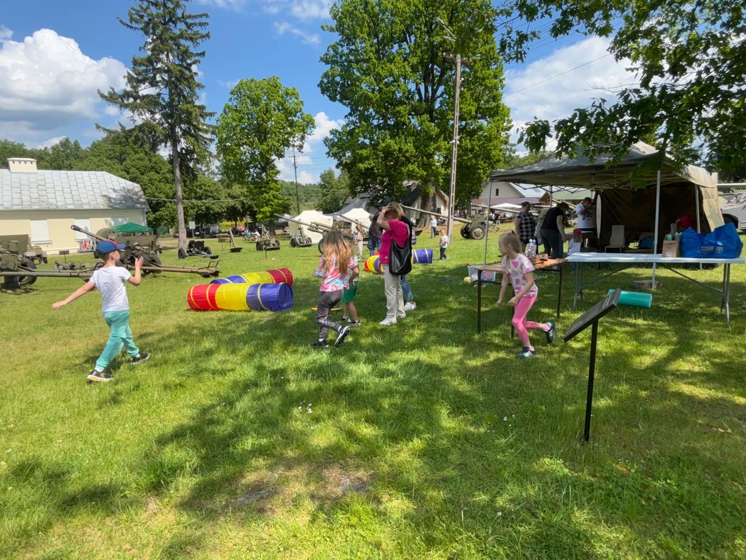 Na dzieci czekały: walki na piankowe miecze, gry, zabawy, strzały do bramki piłkarskiej, próby celności na strzelnicy ASG oraz przejazdy konne.