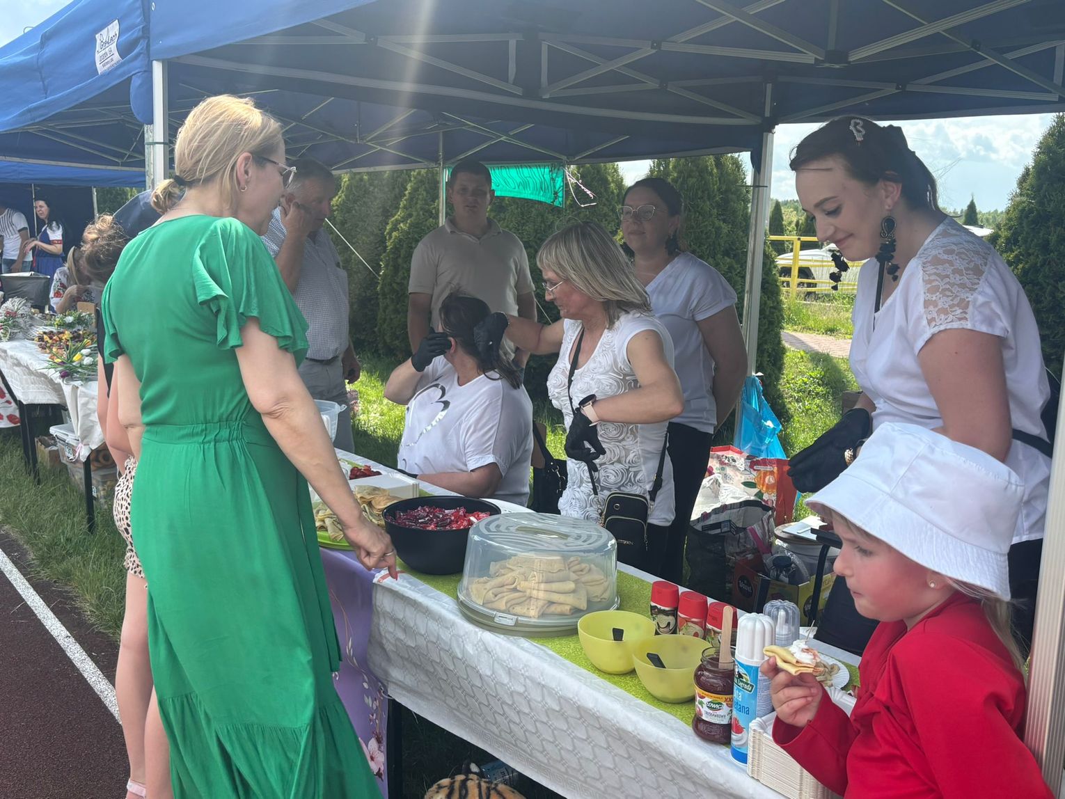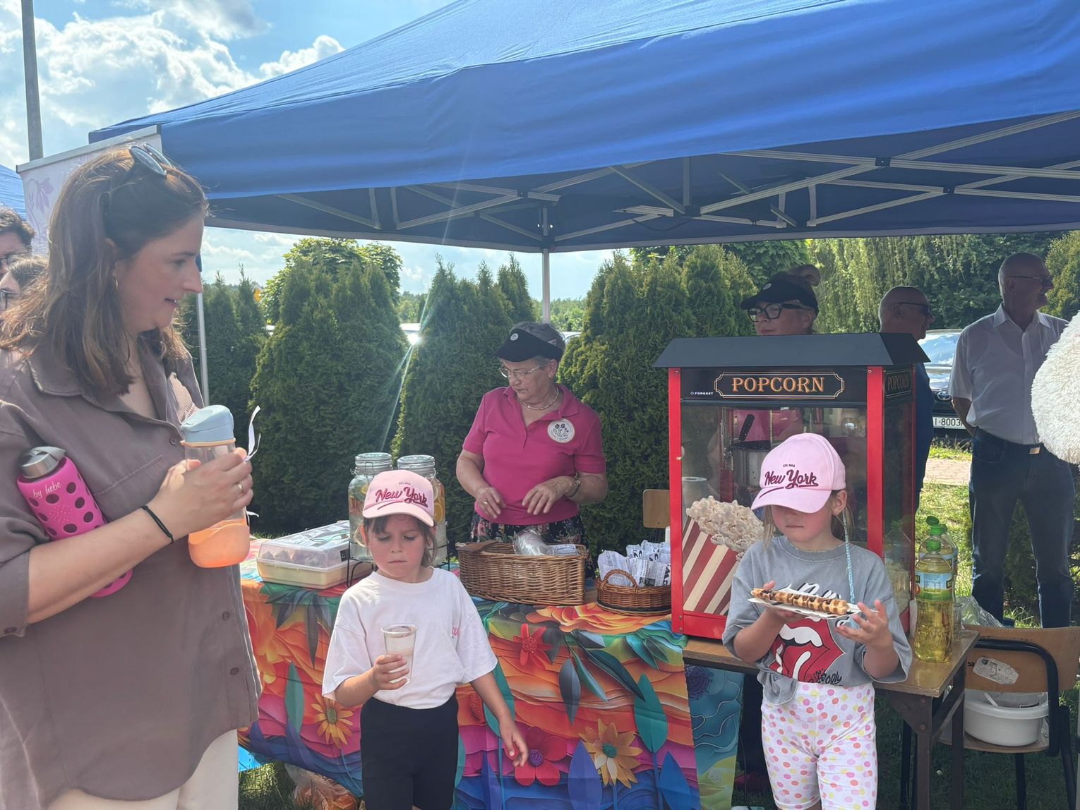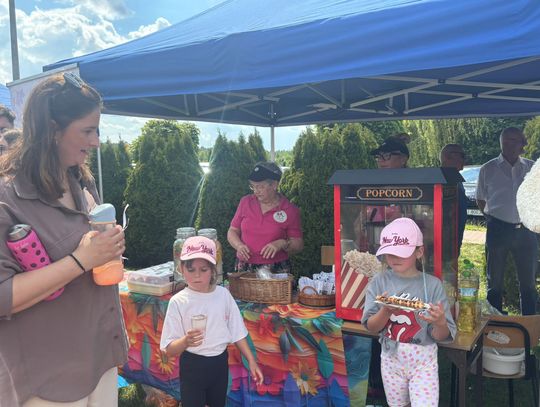Panie z siedmiu Kół Gospodyń Wiejskich przygotowały dla dzieci przepyszne i zdrowe przekąski. Na każdego czekała m.in. zimna lemoniada, kiełbaska z grilla, popcorn, zakręcony ziemniak czy słodkie babeczki.