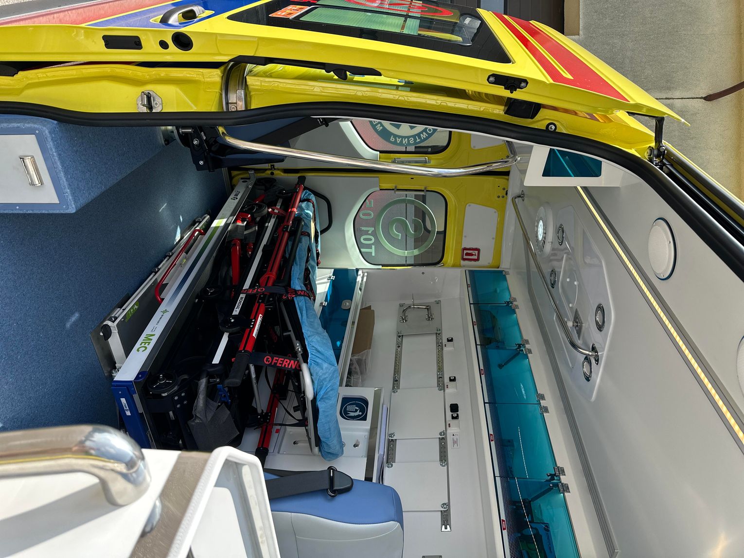 Każdy z ambulansów wyposażony jest w profesjonalne nosze z transporterem oraz defibrylator transportowy, co pozwala ratownikom jeszcze skuteczniej nieść pomoc osobom w stanie zagrożenia życia.