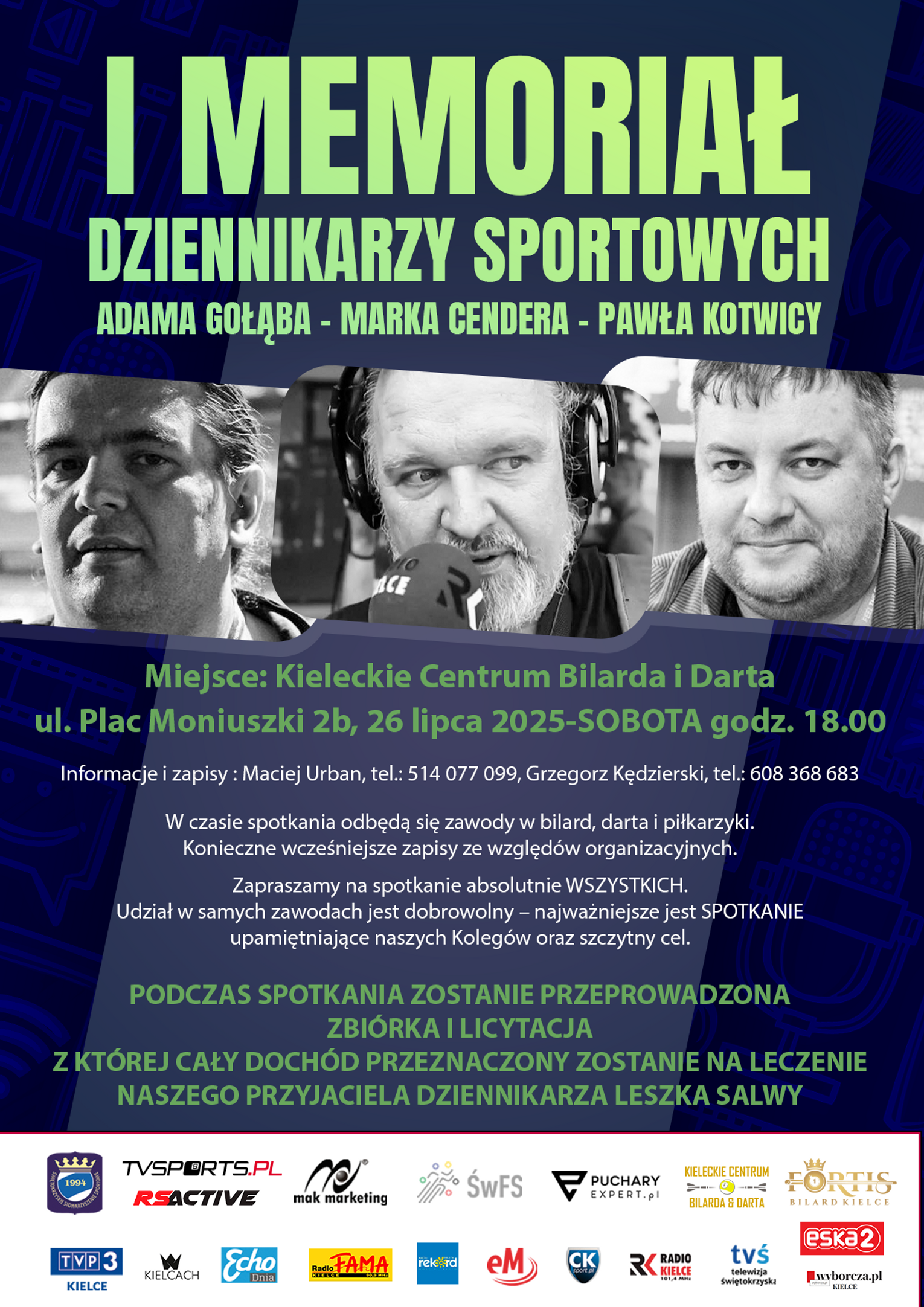 „ To spotkanie ma przypomnieć nam o naszych kolegach dziennikarzach, których już nie ma wśród nas. Oni przez lata swojej pracy mówili o sporcie, promowali sport i sukcesy sportowców z naszego miasta i regionu. Co ważne zajmowali się wieloma dyscyplinami. Byli wielkimi pasjonatami sportu w którym byli zakochani i o którym mogli opowiadać godzinami. I taki jest cel naszego spotkania – przypomnieć ich historię, powspominać wyjazdy i emocje które towarzyszyły podczas wspólnego oglądania wydarzeń sportowych. Spotkaniu ma też towarzyszyć szczytny cel. Tym razem przeprowadzimy licytację oraz zbiórkę z której całość zebranej kwoty przekażemy na leczenie naszego kolegi Leszka Salwy . Mamy nadzieję, że nasze spotkanie swym udziałem zaszczycą rodziny i znajomi, a impreza na stałe wpisze się w kalendarz sportowy dziennikarzy i przyjaciół sportu w Kielcach i województwie „ – powiedział prezes Fortis Kielce Grzegorz Kędzierski.