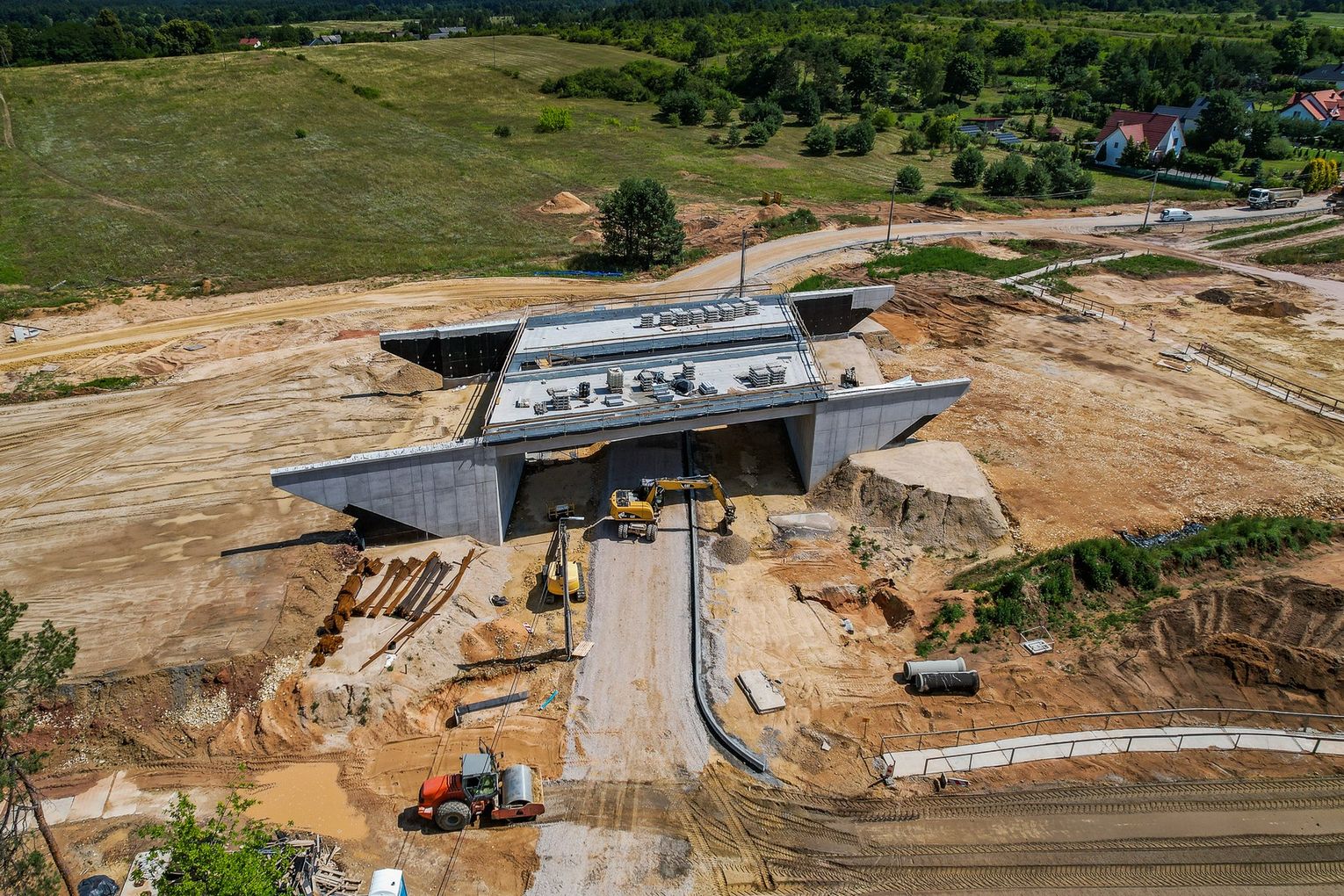 Gotowe są konstrukcje nośne pięciu obiektów mostowych, czyli podziemnego przejścia dla pieszych na początkowym odcinku inwestycji, trzech mostów nad ciekiem w Łabędziowie