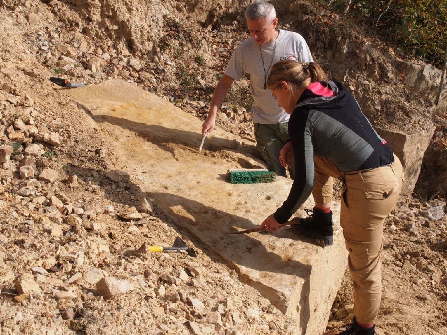 Prace terenowe nad dokumentacją śladów w Kopcu. Na zdjęciu: Piotr Szrek i Katarzyna Grygorczyk (fot. A. Uchman)