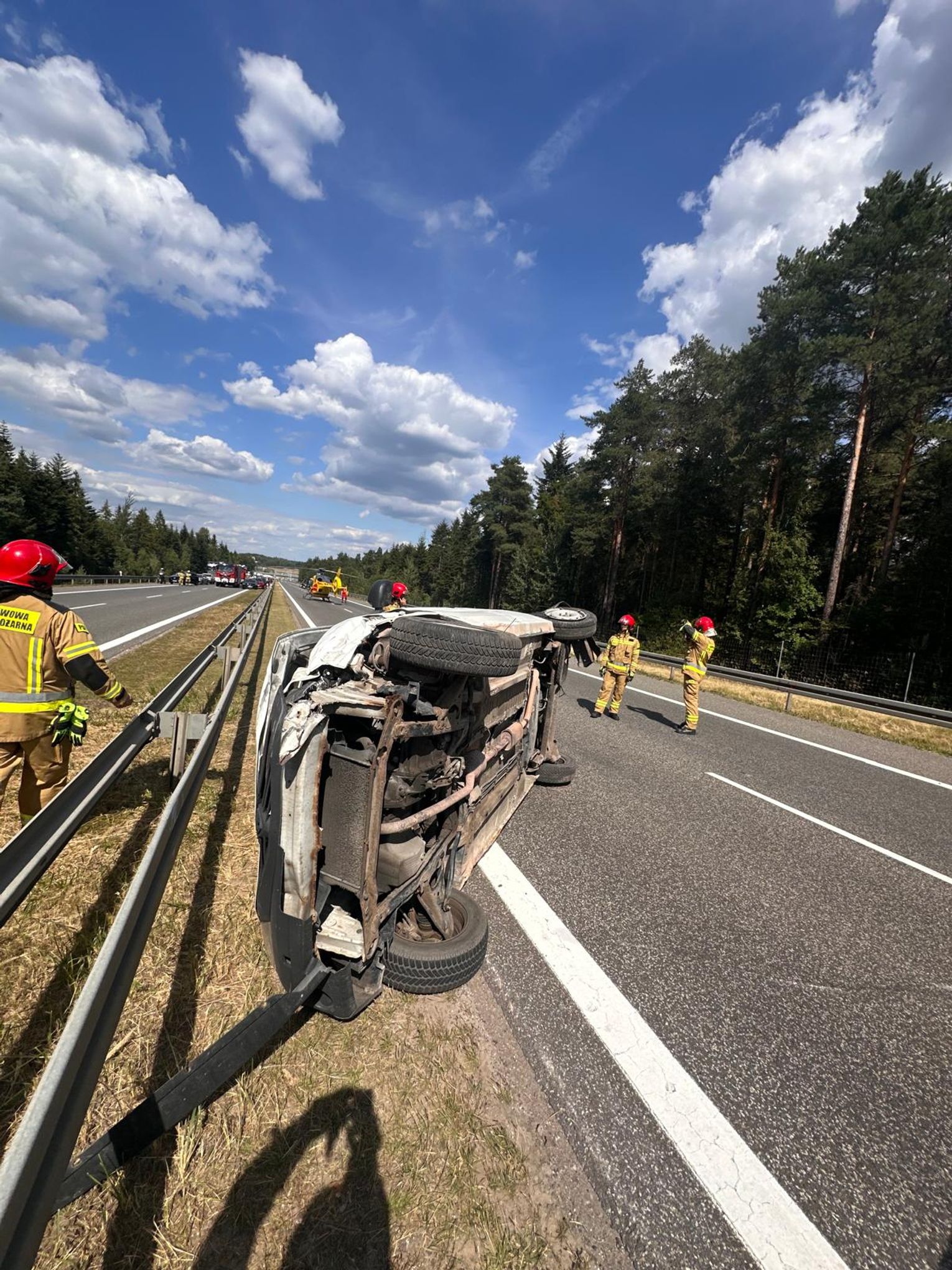 Po przybyciu na miejsce strażacy potwierdzili treść zgłoszenia - samochód osobowy uderzył w barierę energochłonną. Pojazdem podróżował jedynie kierowca. W wyniku kolizji uszkodzone zostało auto oraz fragment bariery, natomiast sam kierowca nie odniósł poważnych obrażeń.
