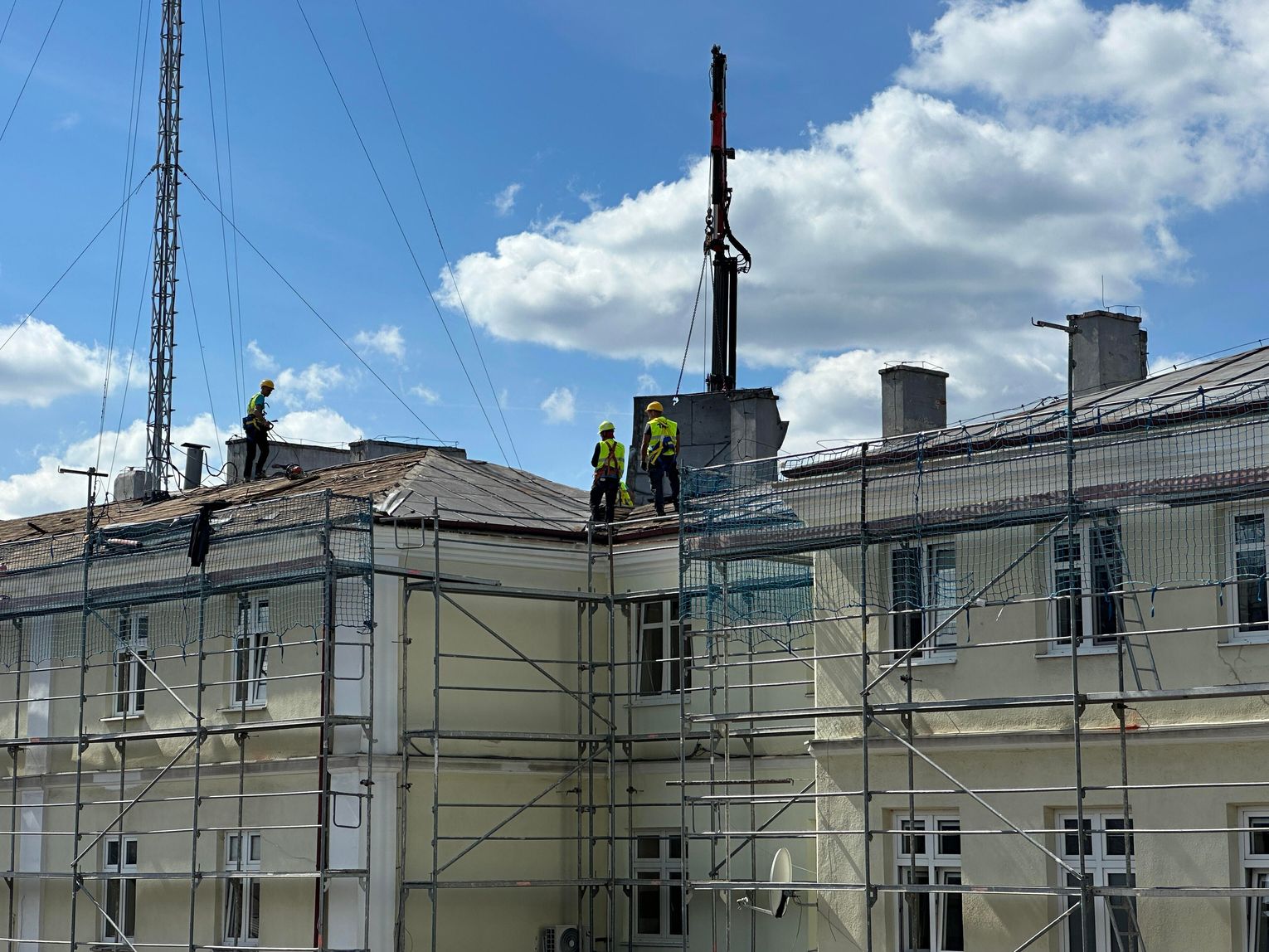 Podczas modernizacji ocieplony zostanie także strop granulatem wełny mineralnej, co poprawi efektywność energetyczną obiektu. Łączna powierzchnia wymienianego pokrycia dachowego to 396 metrów kwadratowych.