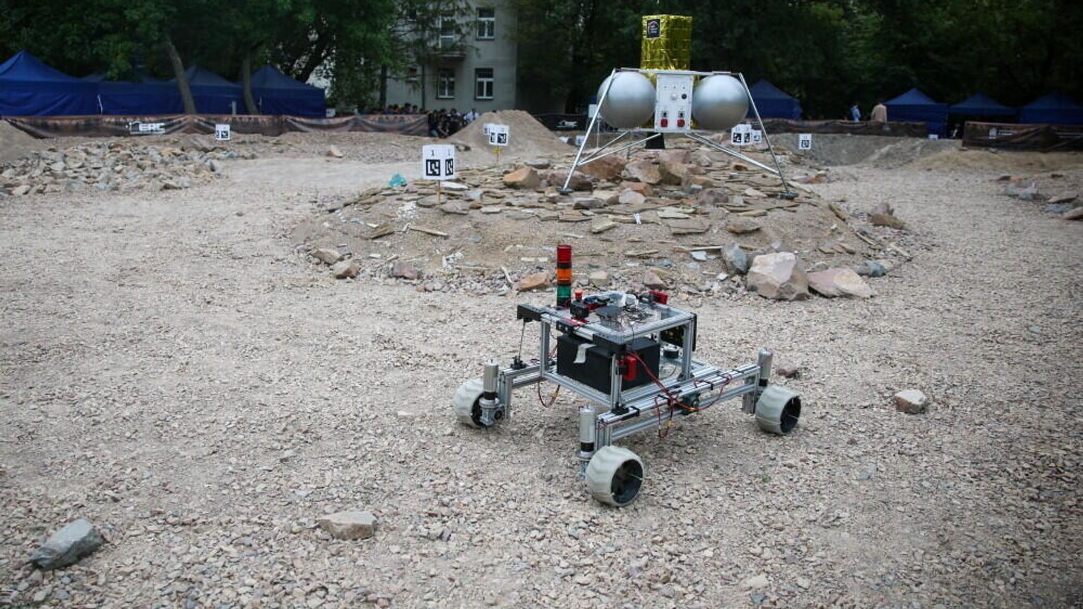 Na Marsyardzie, specjalnie przygotowanym torze przypominającym powierzchnię Czerwonej Planety, zbudowanym na kampusie AGH studenci inżynierii z różnych kontynentów zmierzyli się w zadaniach, które w przyszłości mogą wykonywać roboty eksplorujące Marsa i Księżyc.