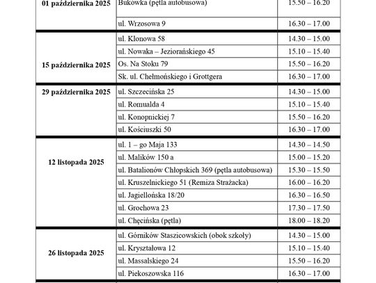 Pełny harmonogram przejazdów dostępny jest poniżej.