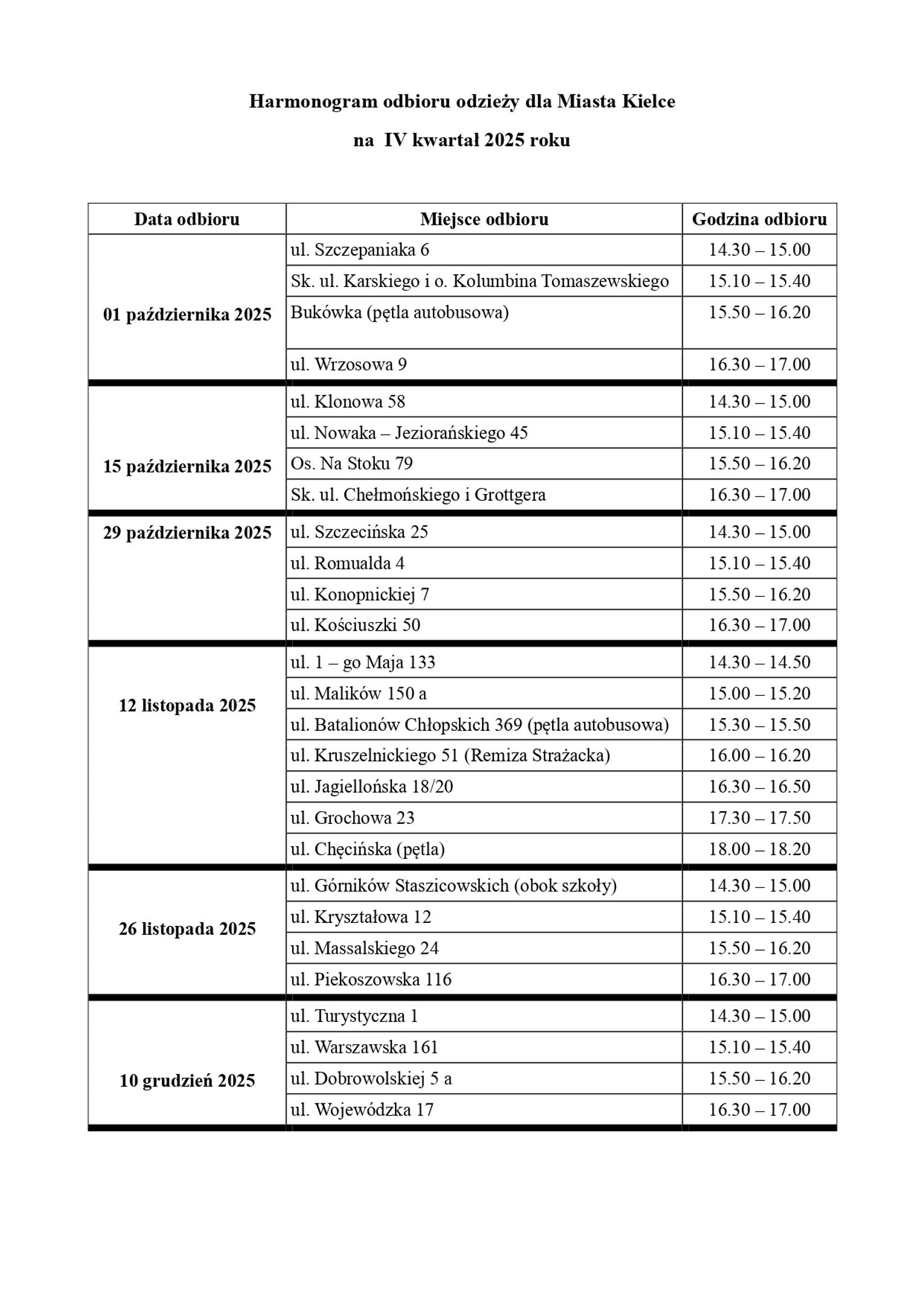 • Zbiórka jest tylko dla osób, które płacą za odbiór odpadów w Kielcach.