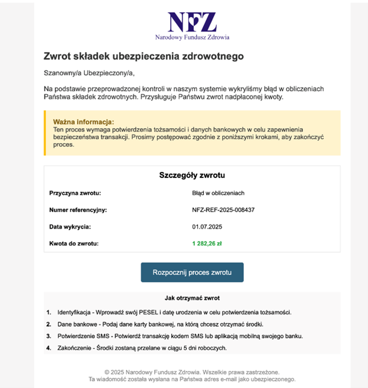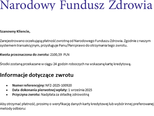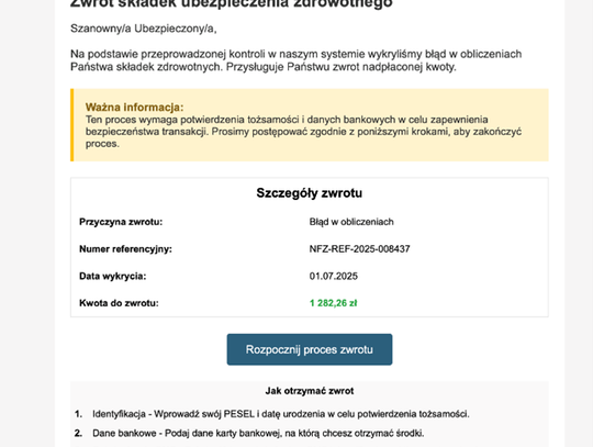 Uwaga! Oszuści mogą podszywać się pod Narodowy Fundusz Zdrowia