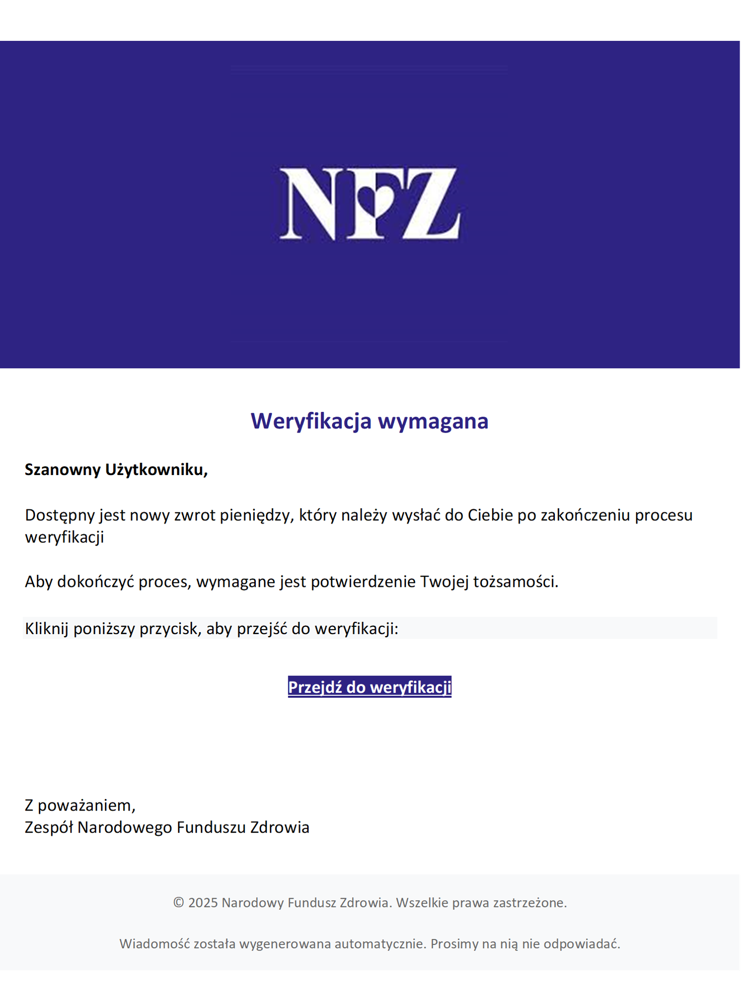 - Jeśli otrzymasz wiadomość od NFZ i masz wątpliwości, skontaktuj się z nami przez bezpłatną infolinię 800 190 590.