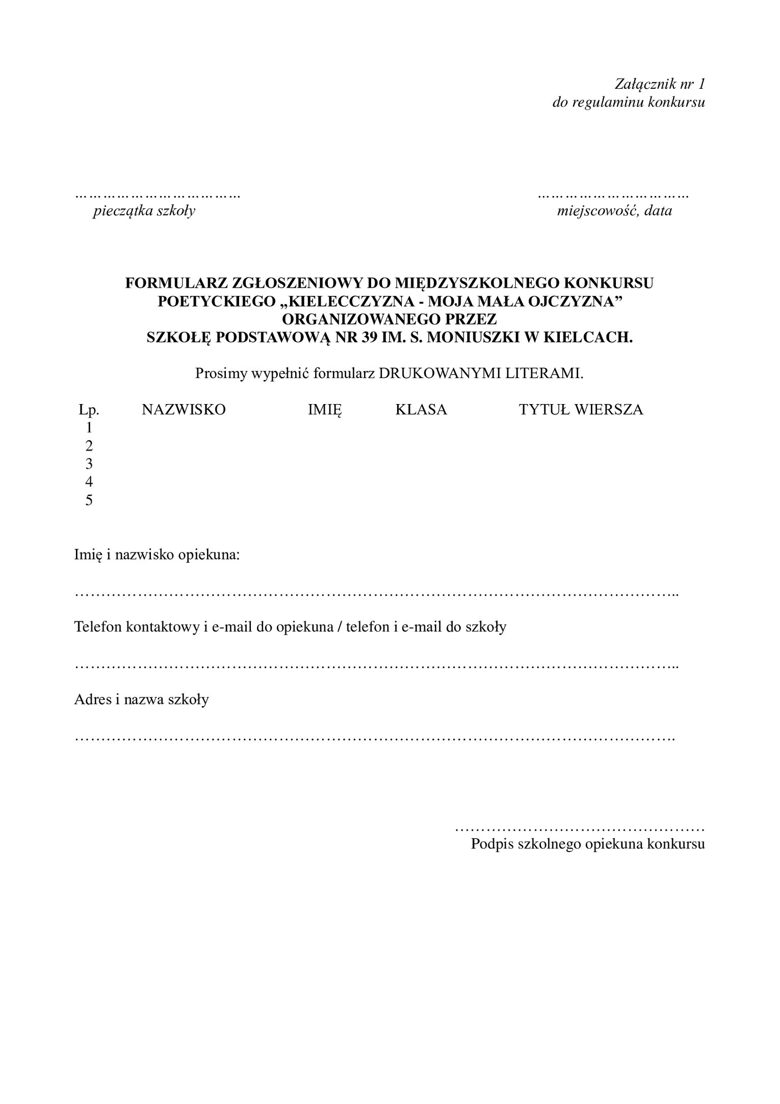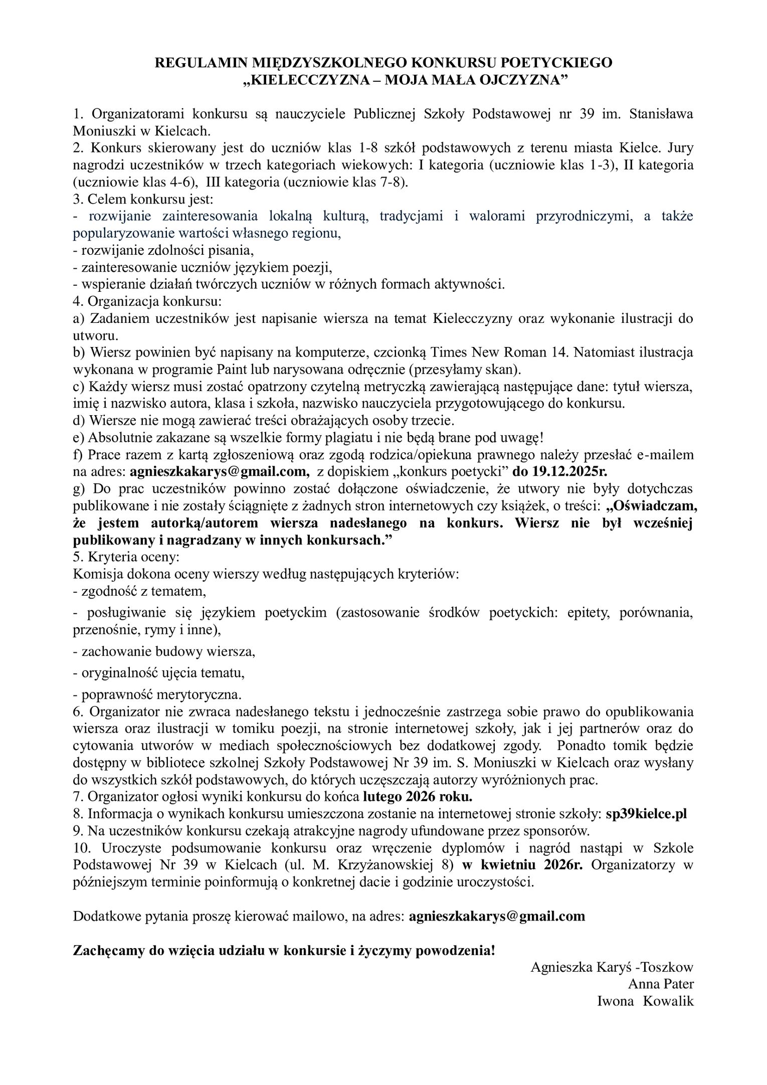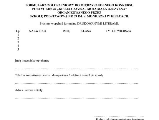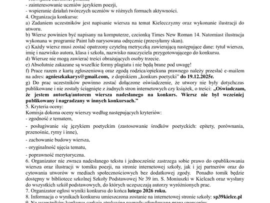 Zadaniem uczestników jest napisanie wiersza na temat Kielecczyzny oraz wykonanie ilustracji do utworu.