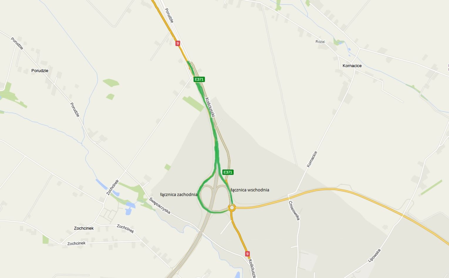 Tymczasowy ruch skierowany zostanie na kilometrowy odcinek DK9. To dwujezdniowy fragment od ronda na wysokości Zochcinka do węzła na skrzyżowaniu z łącznikiem północnym DK74. Obie jezdnie DK9 zawężone będą na tym odcinku do jednego pasa ruchu.
