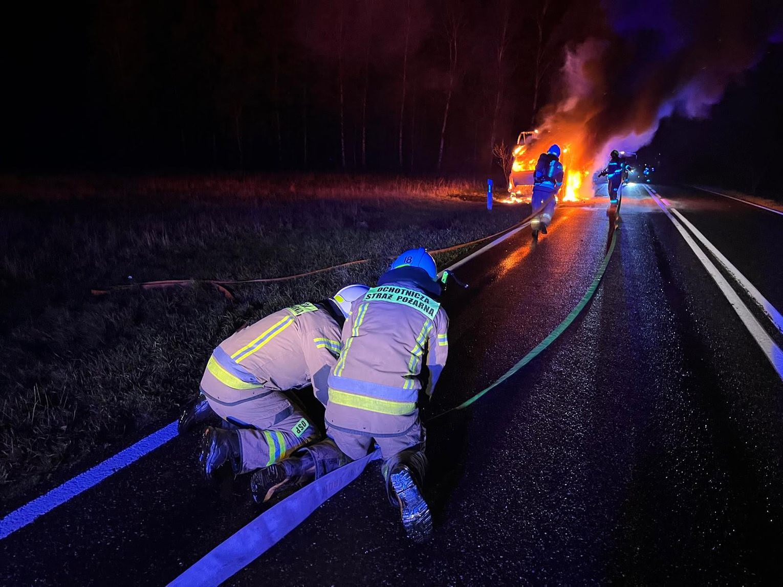 Kierowca zdążył opuścić pojazd przed przybyciem służb ratunkowych i nie odniósł obrażeń - nie wymagał pomocy medycznej.