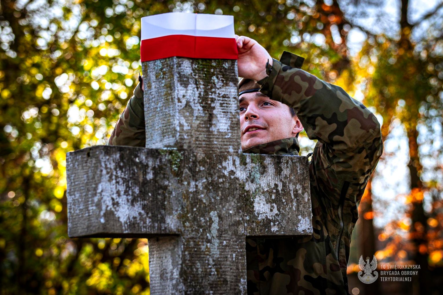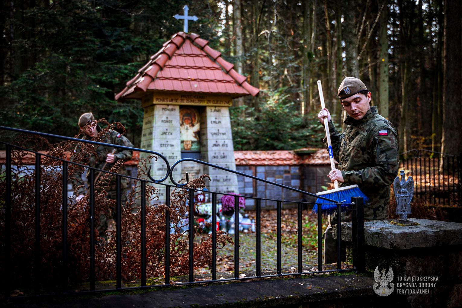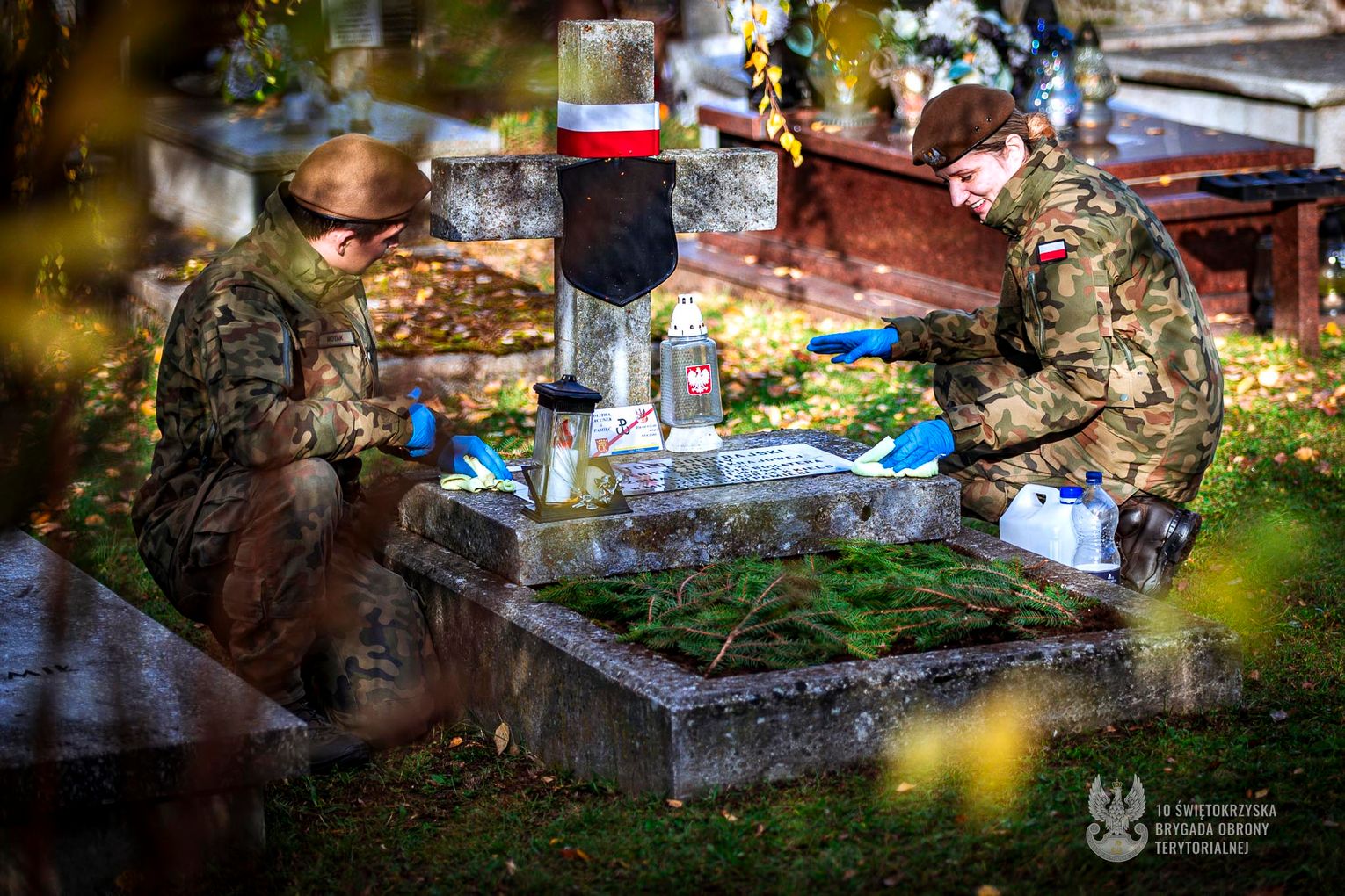 Żołnierze 10 ŚBOT odwiedzili mogiły żołnierzy Armii Krajowej oraz innych formacji niepodległościowych w swoich stałych rejonach odpowiedzialności. Pielęgnowanie miejsc pamięci o bohaterach walk o wolność jest dla Świętokrzyskich Terytorialsów trwałym elementem służby, szczególnie w czasie, gdy zbliża się Święto Zmarłych i Narodowe Święto Niepodległości.
