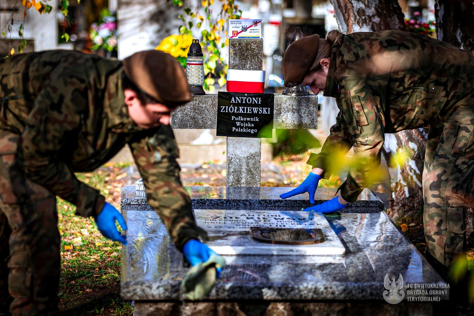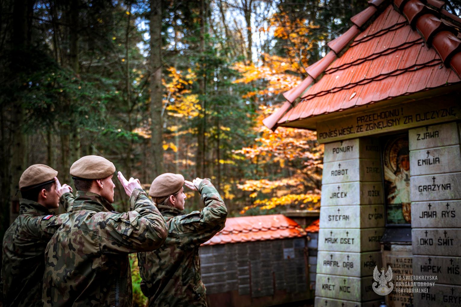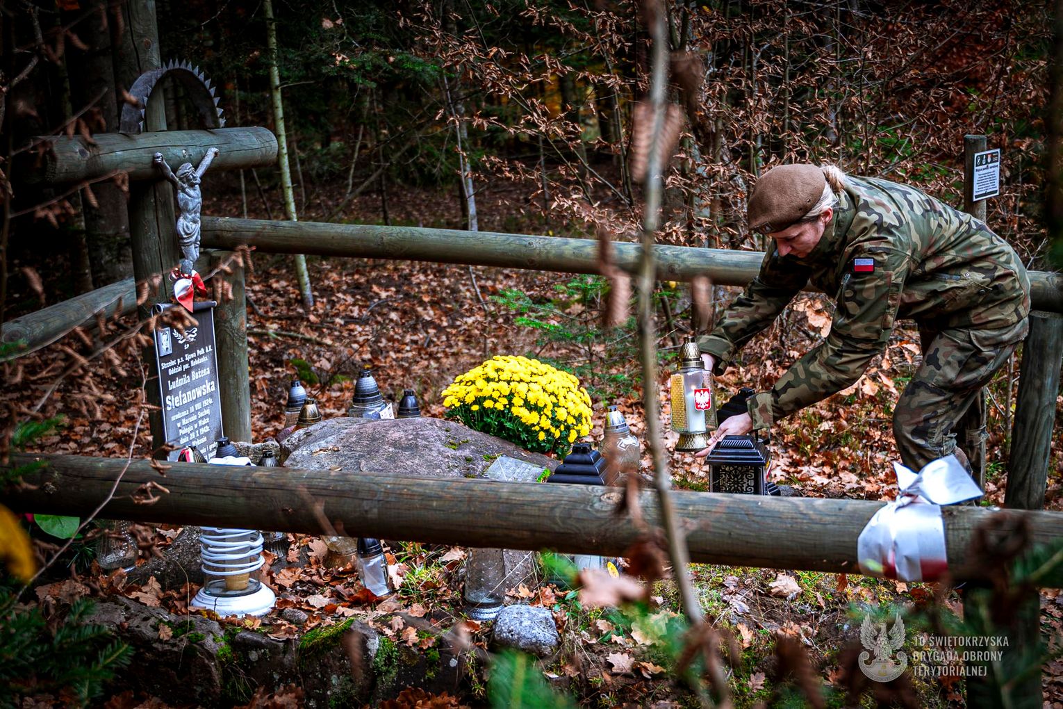 Żołnierze 10 ŚBOT odwiedzili mogiły żołnierzy Armii Krajowej oraz innych formacji niepodległościowych w swoich stałych rejonach odpowiedzialności. Pielęgnowanie miejsc pamięci o bohaterach walk o wolność jest dla Świętokrzyskich Terytorialsów trwałym elementem służby, szczególnie w czasie, gdy zbliża się Święto Zmarłych i Narodowe Święto Niepodległości.