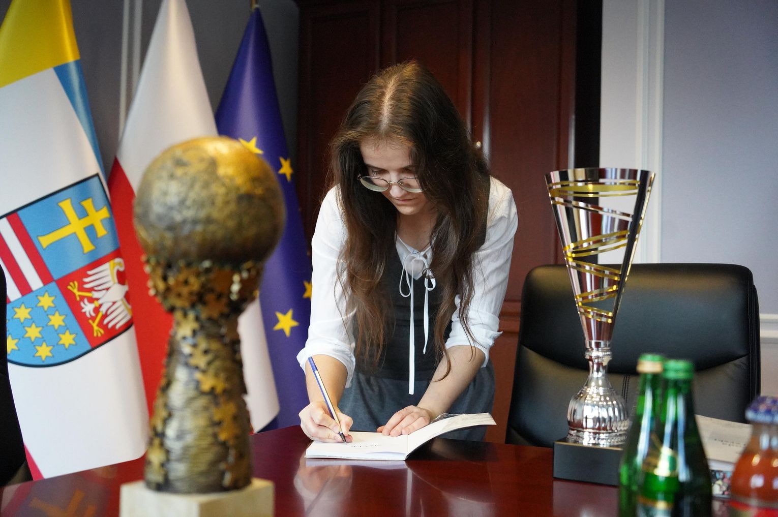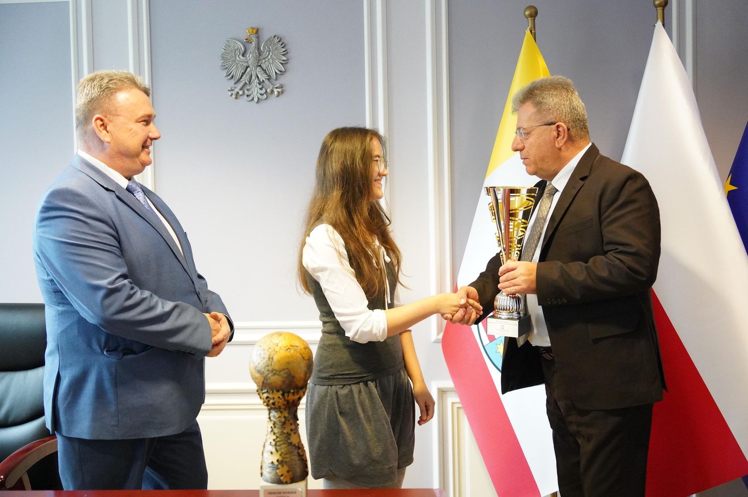 Wojewoda gratulował podwójnego międzynarodowego sukcesu podczas zorganizowanych we wrześniu Mistrzostw Świata w Układaniu Puzzli w hiszpańskim Valladolid. Nasza zawodniczka zajęła tam pierwsze miejsce indywidualnie oraz pierwsze miejsce w parach. Ułożenie składających się z 500 elementów puzzli zajęło jej niecałe 40 minut.
