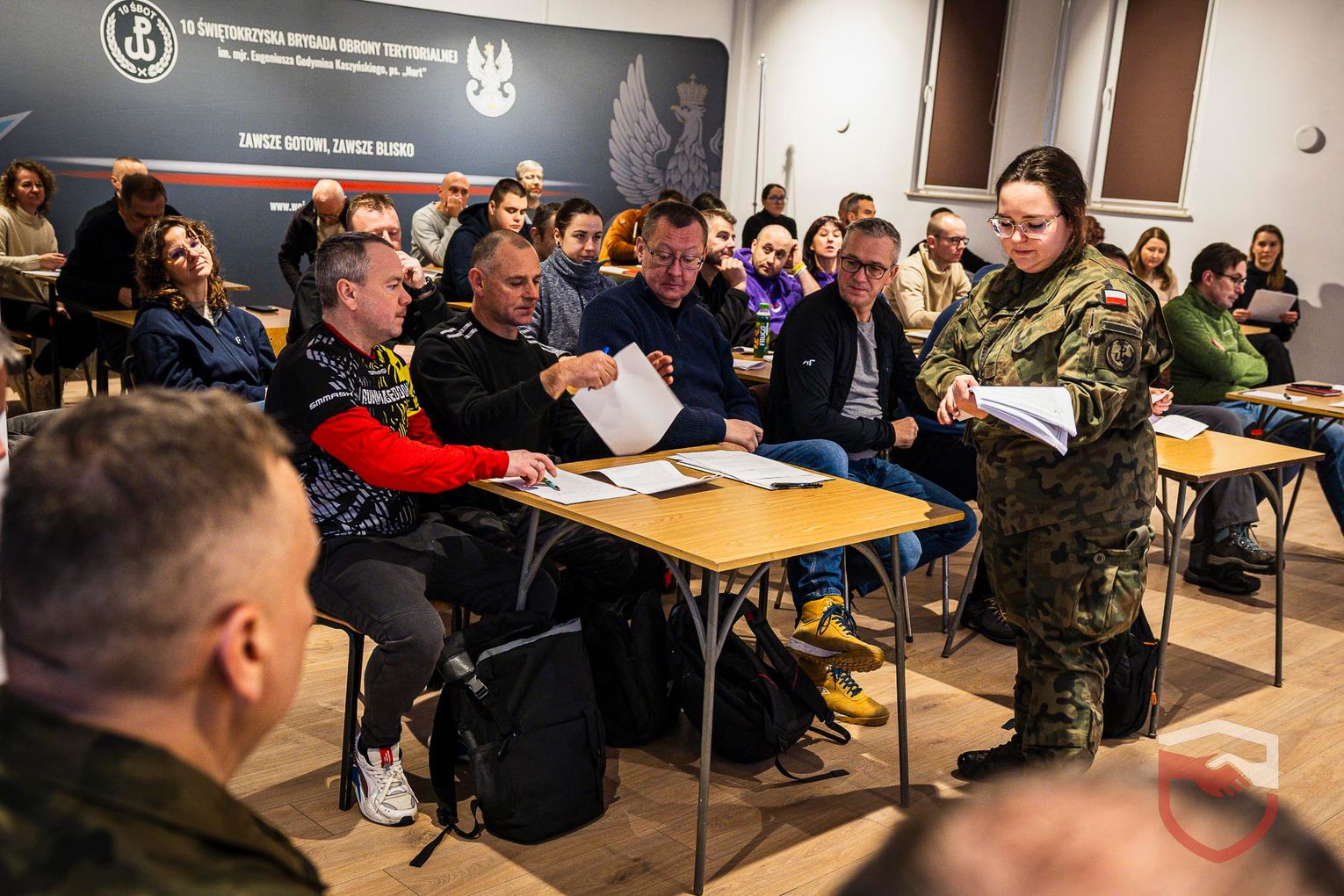 Pierwsza grupa uczestników wzięła udział w szkoleniu przygotowanym przez żołnierzy 10 Świętokrzyskiej Brygady Obrony Terytorialnej. Zajęcia odbyły się w jednostce wojskowej przy ul. Mielczarskiego w Kielcach.