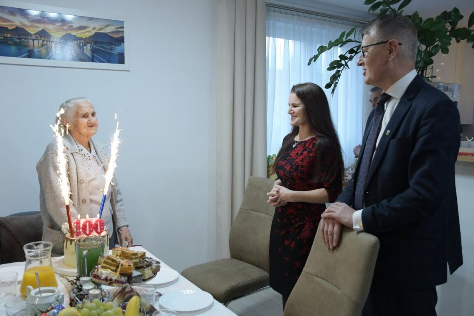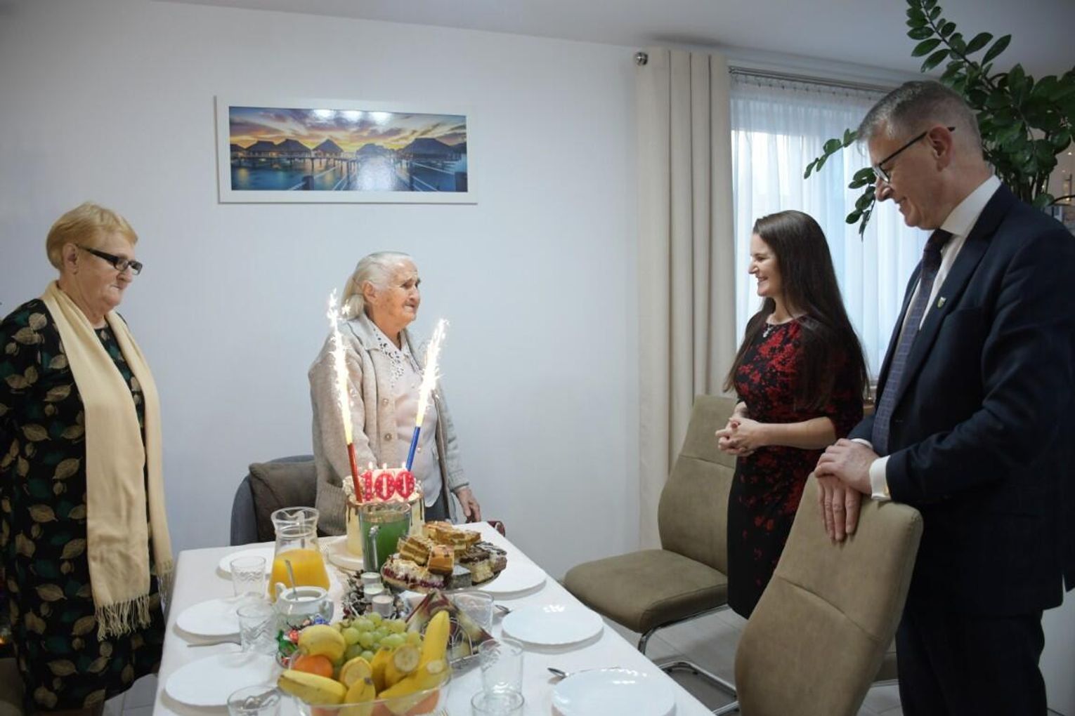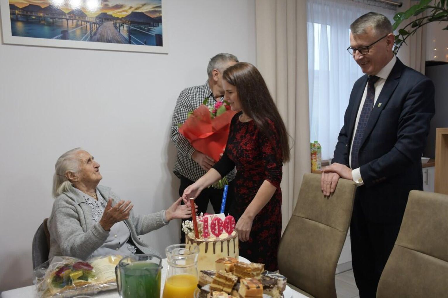 Z tej okazji odwiedzili ją wójt Gminy Mirzec Mirosław Seweryn oraz zastępca kierownika Urzędu Stanu Cywilnego w Mircu Ewa Szczepanowska. Goście złożyli szanownej jubilatce życzenia wielu lat w dobrym zdrowiu, szczęściu, pod opieką kochającej rodziny. Pani Zofia otrzymała piękny bukiet kwiatów, list gratulacyjny oraz upominek. Goście wraz z rodziną pani Zofii zaśpiewali jubilatce „Dwieście lat”. Był także tort, na którym jubilatka jednym dmuchnięciem zgasiła świeczki i lampka bezalkoholowego szampana.