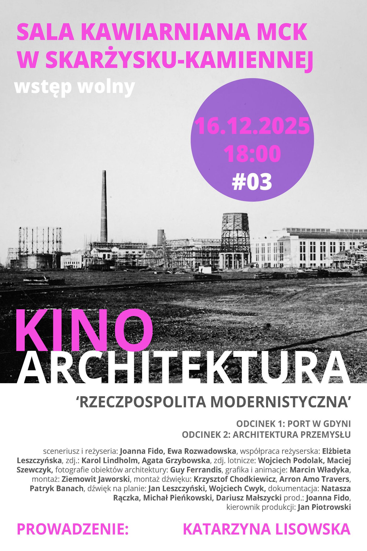 Spotkania rozpoczął cykl pt. “Rzeczpospolita modernistyczna” wyprodukowany przez Narodowy Instytut Architektury i Urbanistyki. Za nami opowieści o modernistycznych gmachach władzy, sportu oraz osiedlach społecznych i luksusowej architekturze mieszkaniowej. Teraz przyszła pora na architekturę przemysłową, która to będzie tematem projekcji 16 grudnia o godz. 18. Temat wybitnie koreluje z historią Skarżyska, zatem szykuje się prawdziwa gratka dla miłośników skarżyskiej historii i architektury.