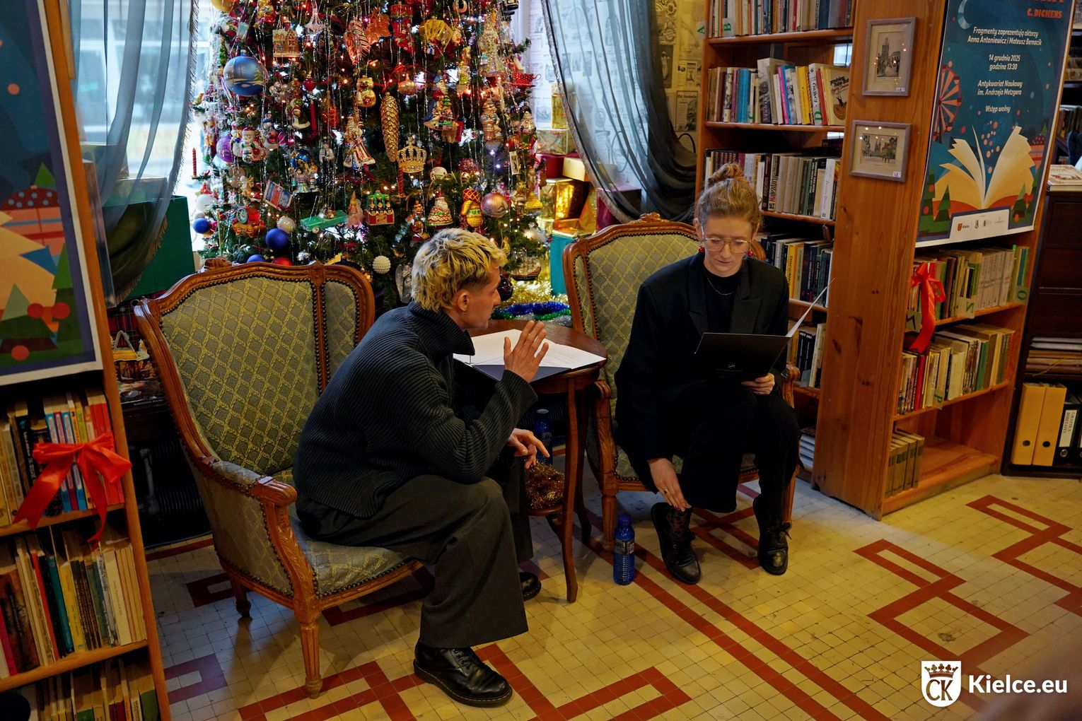 Nie brakowało chętnych do wysłuchania „Opowieści wigilijnej” Charlesa Dickensa w interpretacji aktorów Teatru Im. Stefana Żeromskiego – Anny Antoniewicz i Mateusza Bernacika.