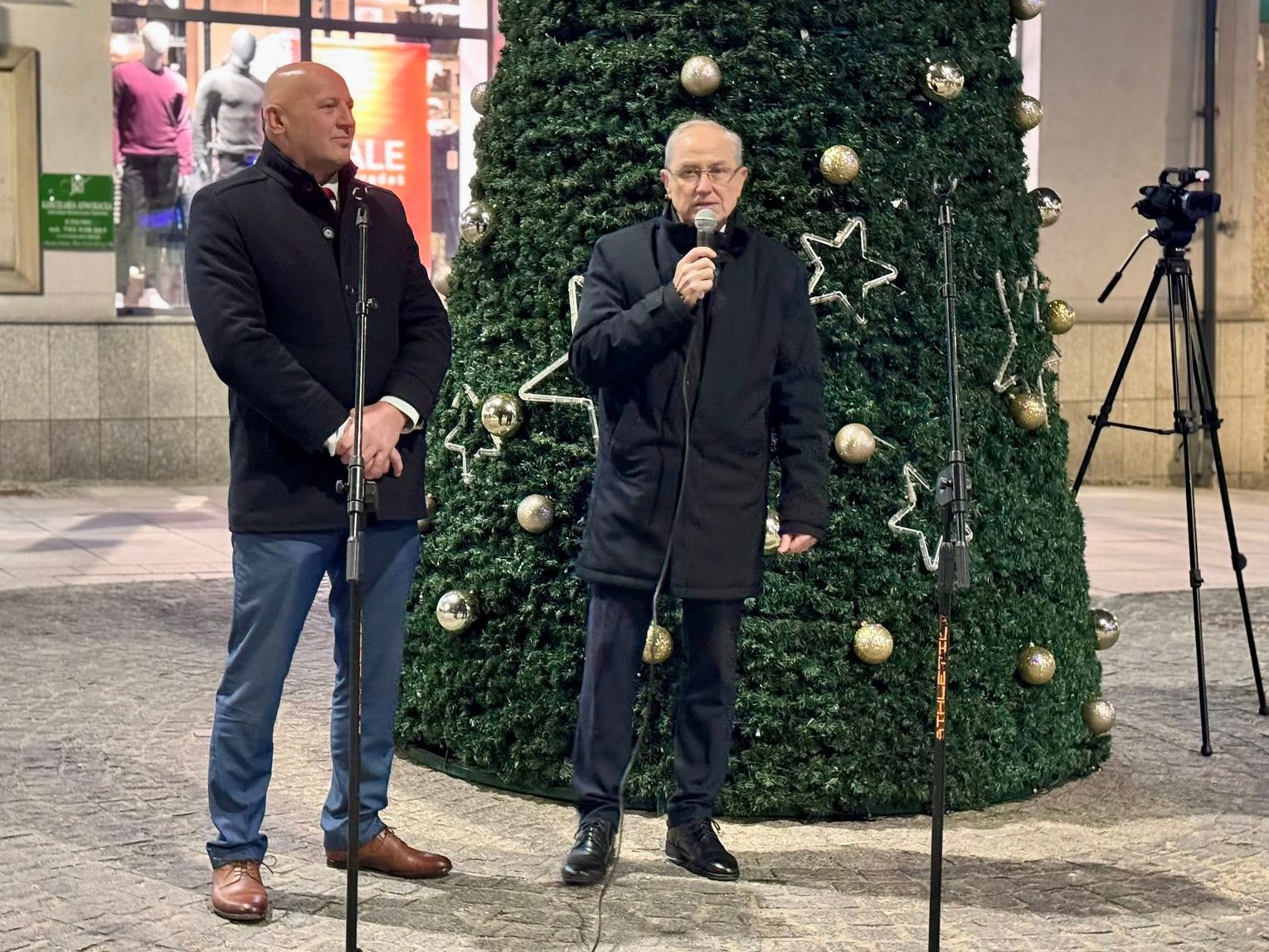 Symbolicznego rozświetlenia świątecznych iluminacji dokonali Zastępca Burmistrza Miasta i Gminy Busko-Zdrój Pan Mirosław Wieczorek oraz Przewodniczący Rady Miejskiej Jacek Wach.