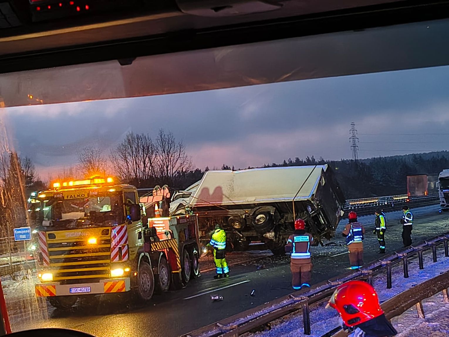 Około godziny 1:20 do PSP w Skarżysku wpłynęło zgłoszenie o kolizji dwóch pojazdów ciężarowych na trasie S7 w Skarżysku-Kamiennej. Po dojeździe strażaków na miejsce zdarzenia trasa S7 w kierunku Radomia była całkowicie nieprzejezdna. Po rozpoczęciu interwencji Policja zablokowała również trasę w kierunku Kielc.