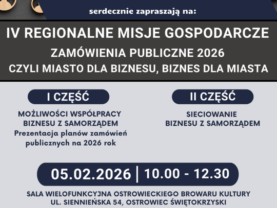 Podczas IV edycji Misji prezydenci miast: Artur Łakomiec – Prezydent Miasta Ostrowca Świętokrzyskiego, Marek Materek – Prezydent Starachowic oraz Arkadiusz Bogucki – Prezydent Skarżyska-Kamiennej, zaprezentują planowane na 2026 rok inwestycje, zakupy, usługi oraz roboty budowlane. To doskonała okazja, aby poznać nadchodzące postępowania i przygotować się do udziału w przetargach.