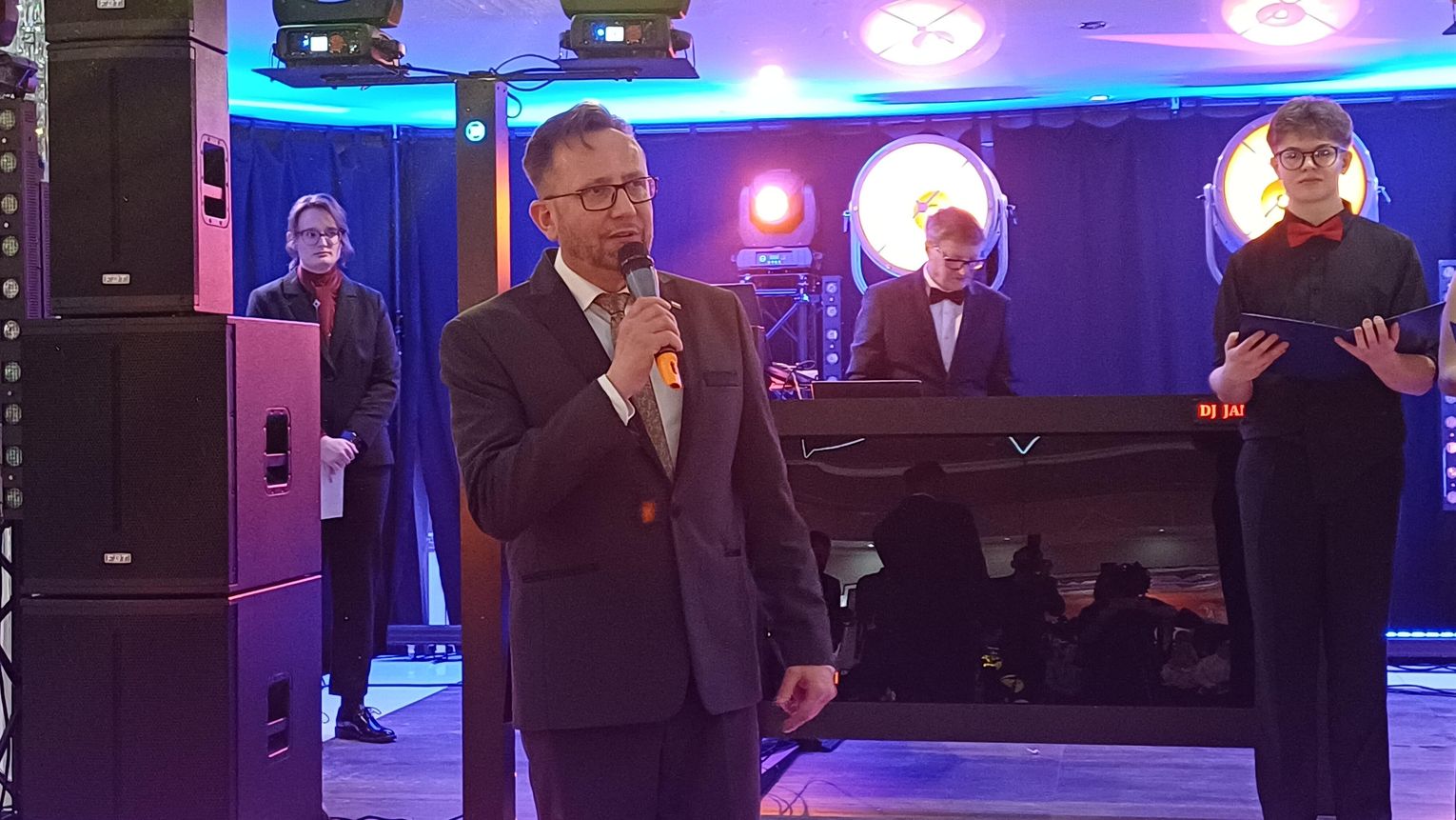 Po tangu głos zabrali zaproszeni goście: starosta jędrzejowski Paweł Faryna, burmistrz miasta i gminy Jędrzejów Marcin Piszczek oraz dyrektorka liceum Małgorzata Wojtasik. W swoich wystąpieniach gratulowali młodzieży pięknego otwarcia balu, podkreślali wyjątkowość tego wieczoru oraz życzyli uczniom powodzenia na maturze, sukcesów w dalszej edukacji i spełnienia planów na przyszłość.