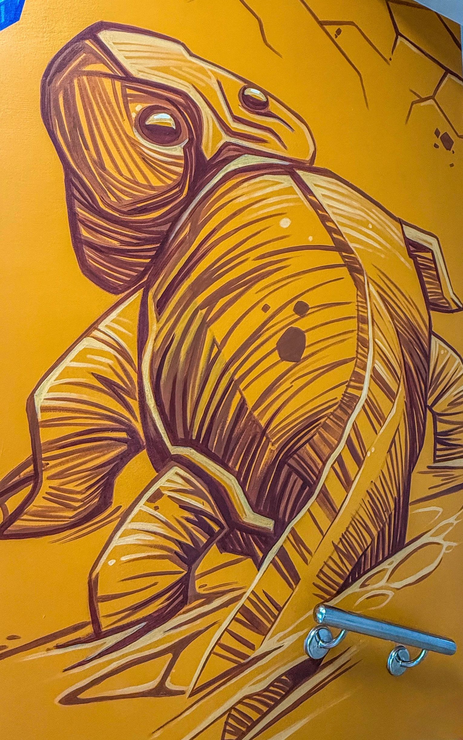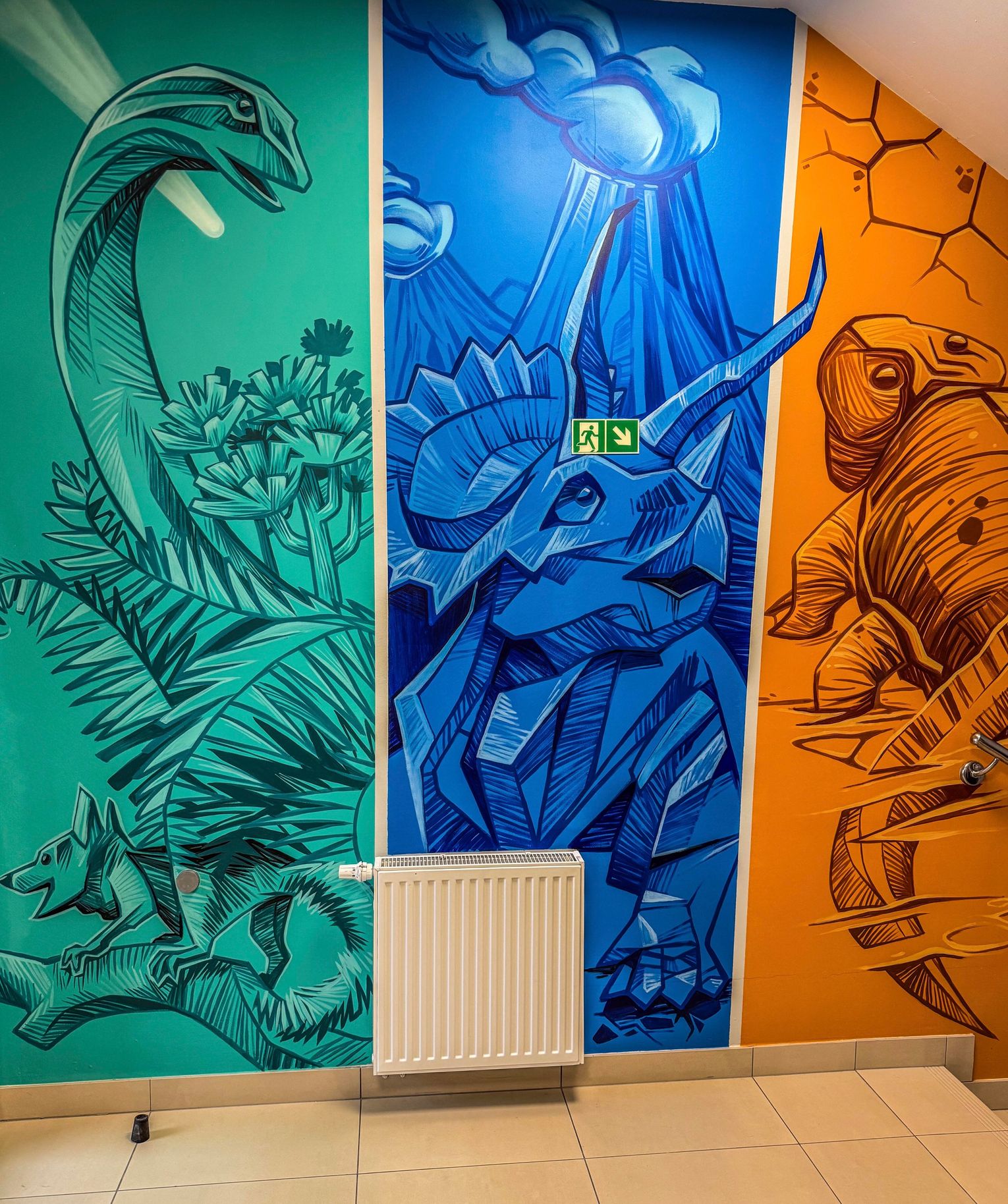 Autorem muralu jest grafik Krzysztof Lipiński, którego prace zdobią między innymi zewnętrzne ściany budynku Zespołu Szkół im. Juliusza Verne’a w Kielcach.