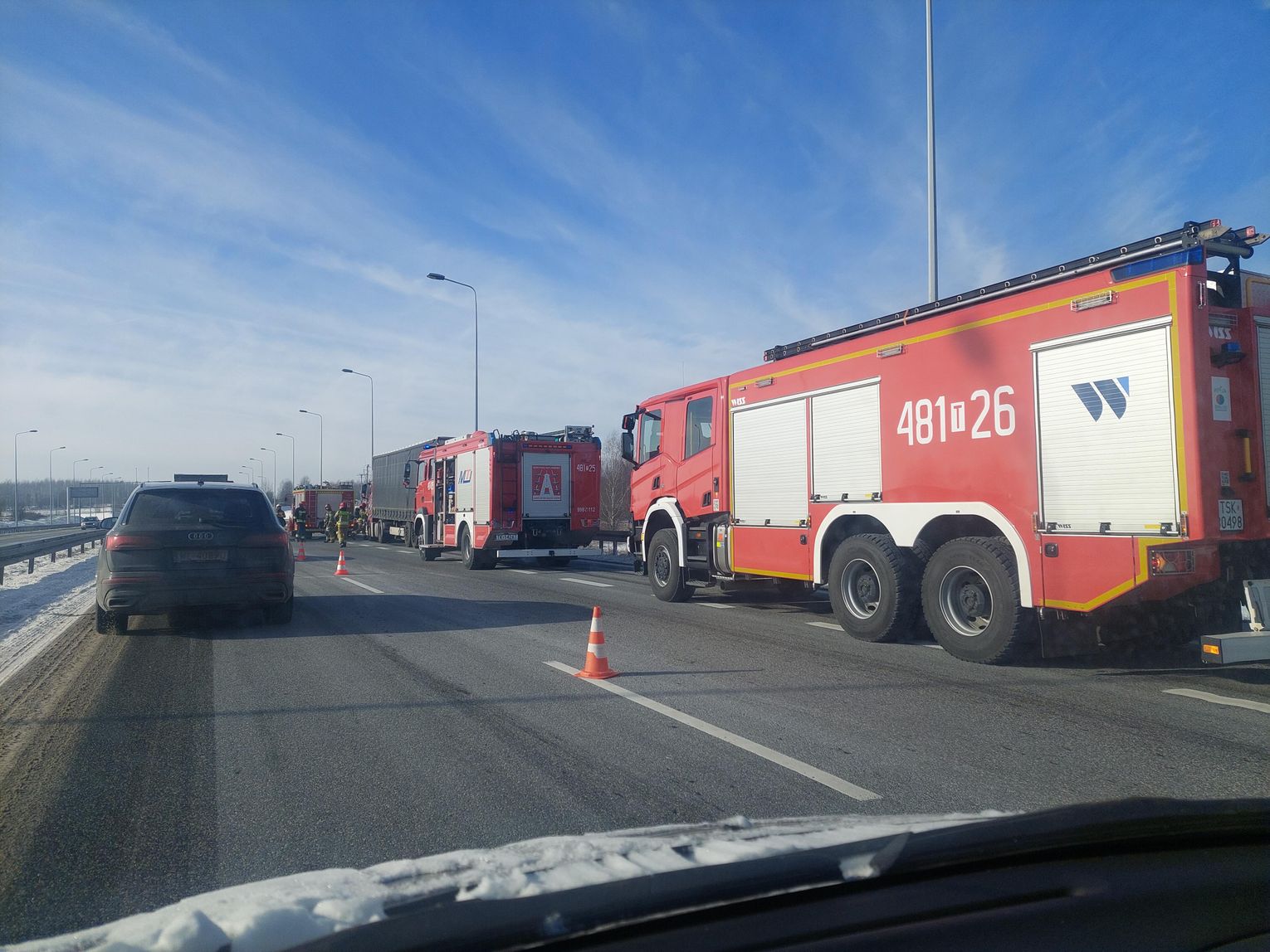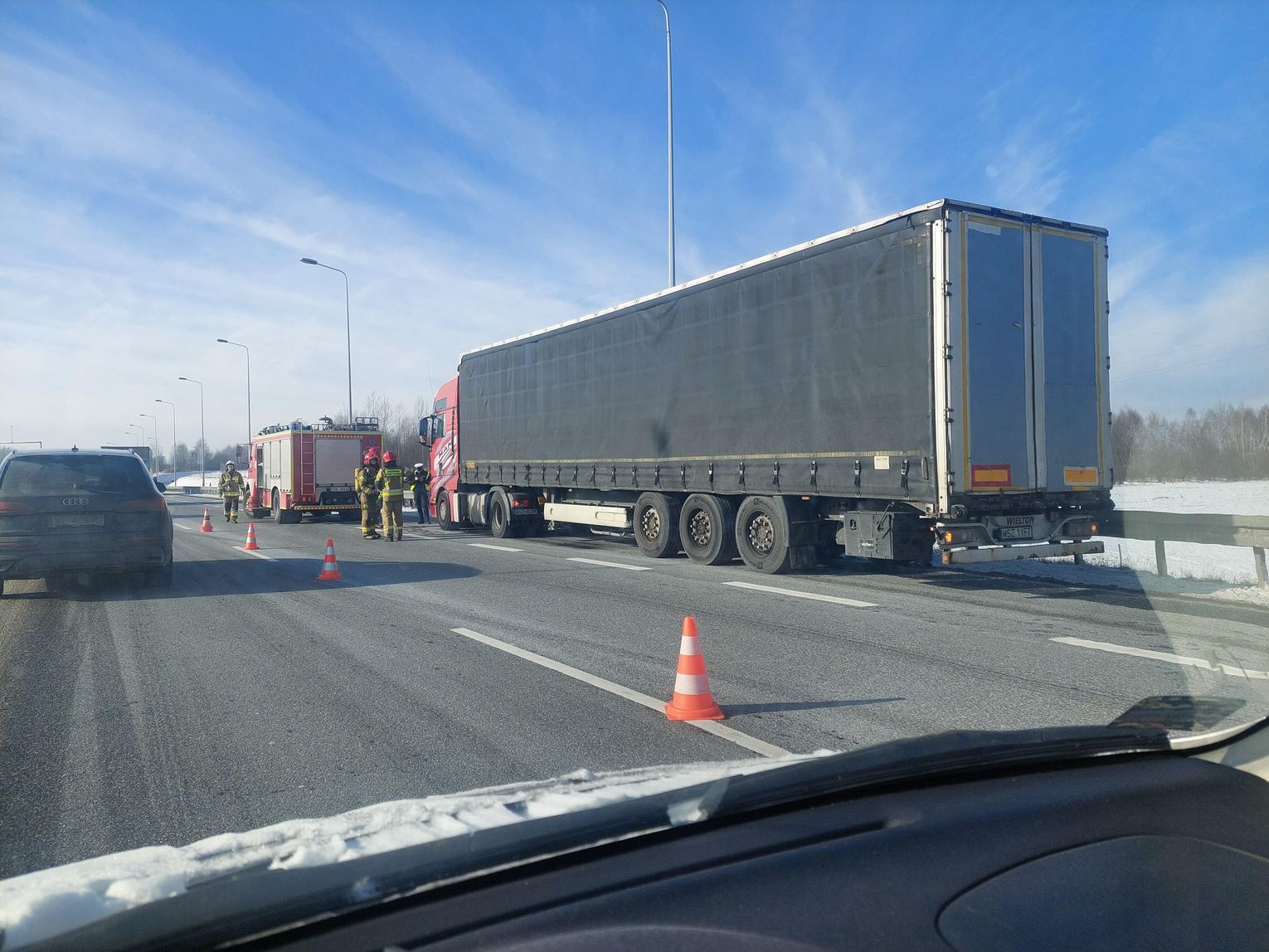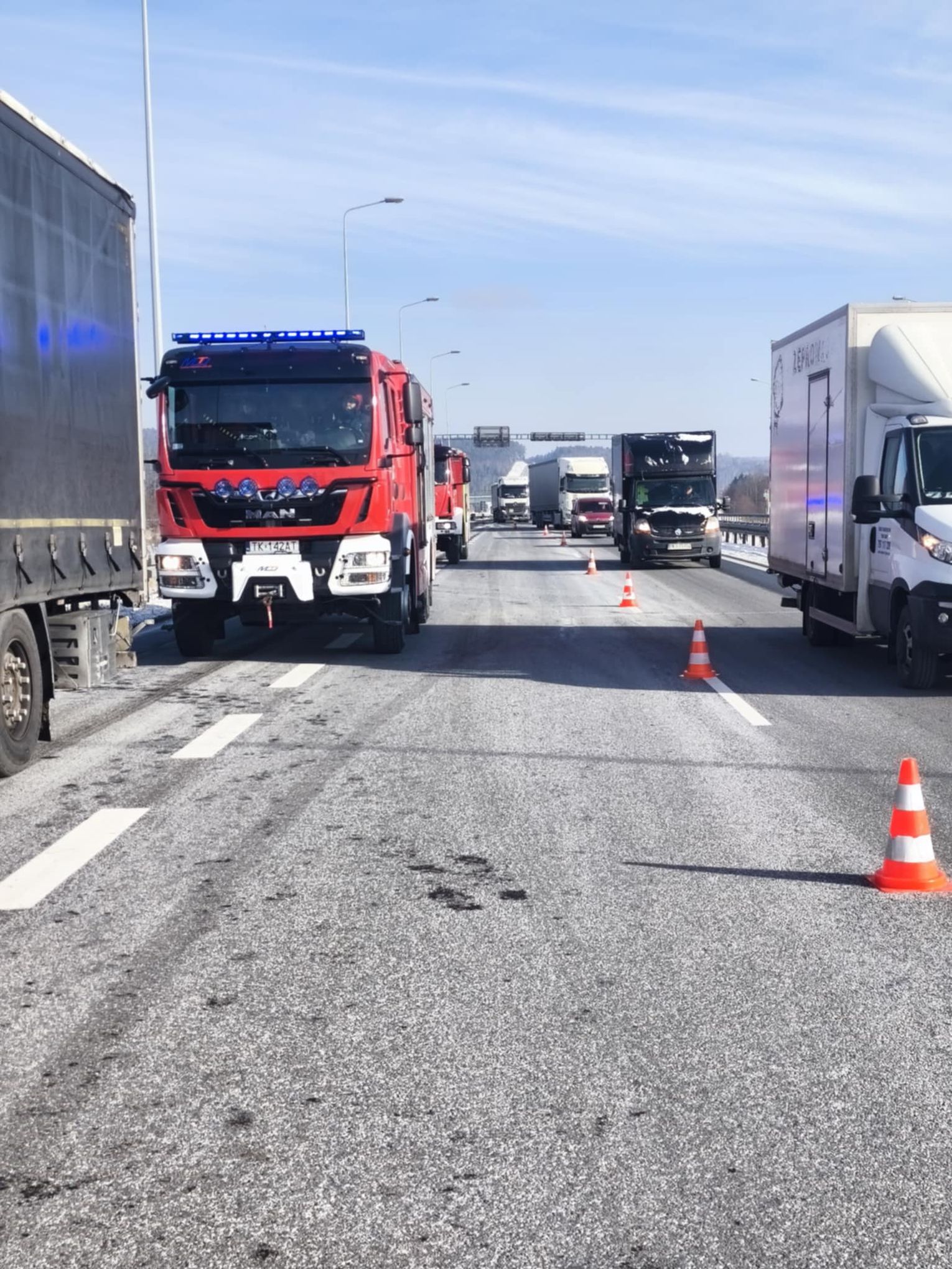 Na czas prowadzonych działań ratowniczych pas jezdni w kierunku Kielc został zawężony - ruch odbywał się jednym pasem. Sytuacja nie spowodowała jednak całkowitego zablokowania ekspresówki, a służby we współpracy z policją kierowały pojazdy i kontrolowały natężenie ruchu, aby zminimalizować utrudnienia dla kierowców.