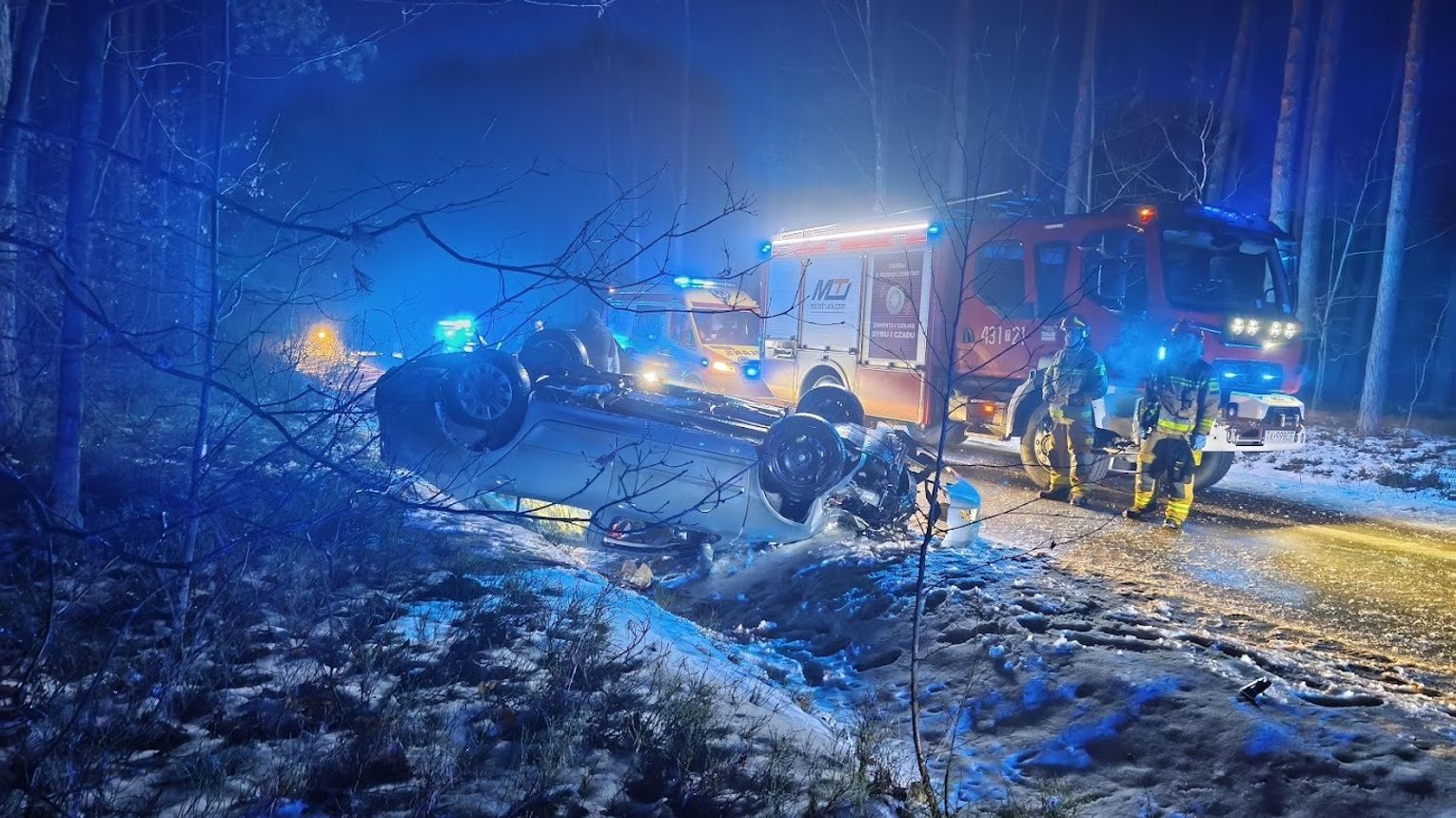Według zgłoszeń, kierująca osobową Škodą Octavią straciła panowanie nad pojazdem, wskutek czego auto zjechało z jezdni i uderzyło w przydrożne drzewo, po czym przewróciło się na dach.