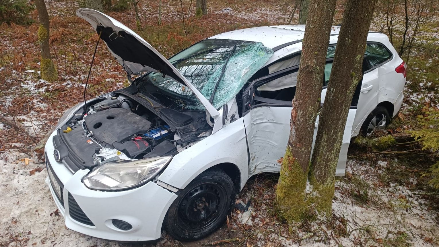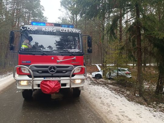 Według wstępnych ustaleń, kierujący osobowym Fordem Focus stracił panowanie nad pojazdem na silnie oblodzonej, leśnej nawierzchni i zjechał z jezdni. W efekcie auta znalazło się poza drogą, a poszkodowani - dwaj mężczyźni - odnieśli obrażenia.