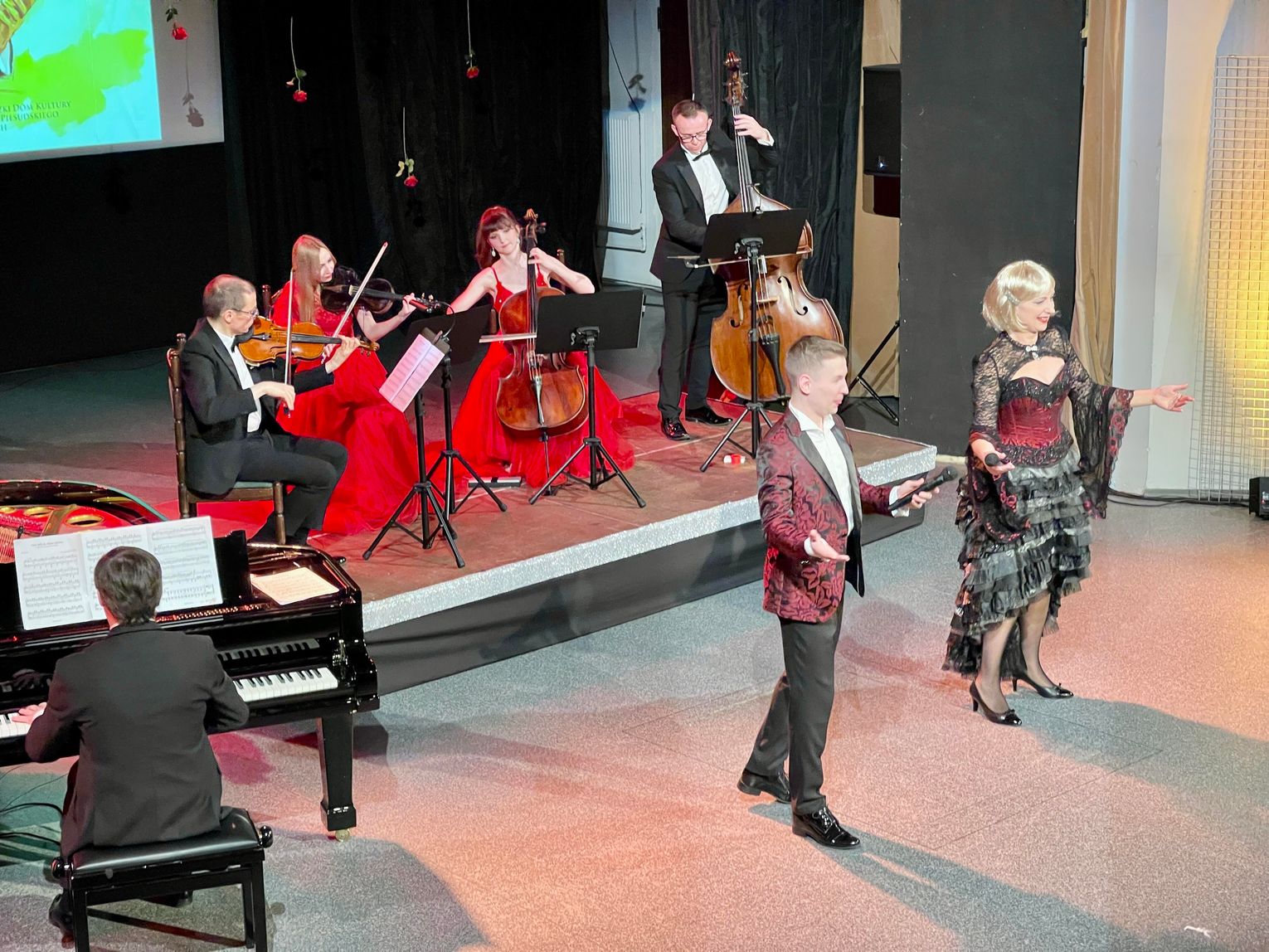 Na scenie wystąpili znakomici artyści: Renata Drozd – sopran oraz Michał Jewiarz – baryton. Artystom towarzyszył kwartet smyczkowy Estradi Various w składzie: Mariusz Połomka – skrzypce, Emilia Kopeć – skrzypce, Magda Sikorska-Osuch – wiolonczela, Jarosław Wdowik – kontrabas. Przy fortepianie zasiadł Michał Kopeć.