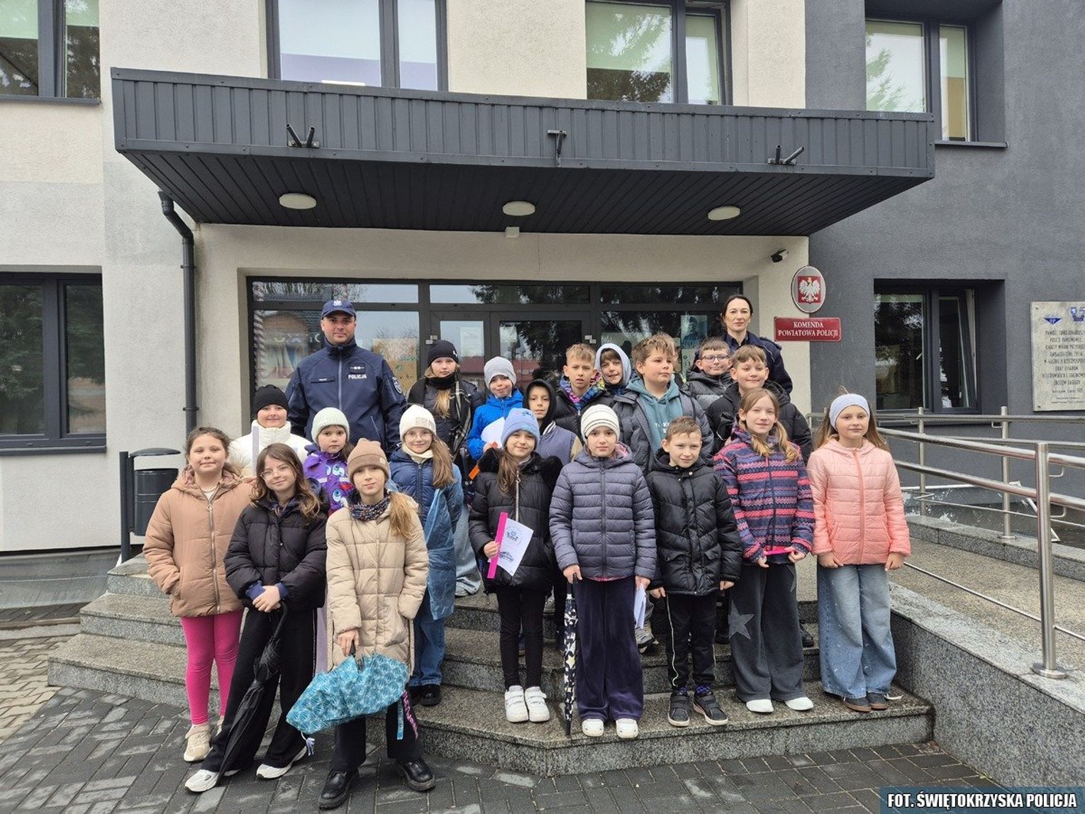 Dziś Komendę Powiatową Policji w Jędrzejowie odwiedzili wyjątkowi goście – uczniowie klasy trzeciej Szkoły Podstawowej nr 3 w Jędrzejowie. Wizyta miała charakter profilaktyczno-edukacyjny i była doskonałą okazją do przybliżenia najmłodszym specyfiki pracy policjantów. Podczas spotkania dzieci zostały oprowadzone po budynku komendy, gdzie mogły zobaczyć, jak wygląda codzienna służba funkcjonariuszy. Uczniowie zapoznali się z zadaniami realizowanymi przez Wydział Ruchu Drogowego, Wydział Kryminalny oraz Wydział Prewencji. Policjanci w przystępny sposób opowiedzieli o swojej pracy, obowiązkach oraz odpowiedzialności, jaka wiąże się z wykonywaniem tego zawodu. Dużym zainteresowaniem wśród uczniów cieszył się pokaz radiowozu policyjnego oraz motocykla służbowego. Dzieci miały okazję z bliska przyjrzeć się pojazdom wykorzystywanym w codziennej służbie, a także poznać ich wyposażenie. Nie zabrakło również pokazu sprzętu policyjnego oraz omówienia jego zastosowania w praktyce. Funkcjonariusze szczególną uwagę poświęcili tematyce bezpieczeństwa w ruchu drogowym, przypominając najmłodszym o podstawowych zasadach, które pomagają unikać zagrożeń na drodze. Spotkanie przebiegło w miłej i przyjaznej atmosferze. Uczniowie chętnie zadawali pytania oraz aktywnie uczestniczyli w zajęciach. Tego typu inicjatywy mają na celu budowanie zaufania do Policji oraz kształtowanie właściwych postaw w zakresie bezpieczeństwa już od najmłodszych lat.