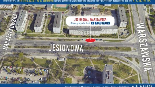 Uwaga pasażerowie! Nowy przystanek Jesionowa / Warszawska na mapie komunikacyjnej Kielc. 12.02.2020 09:36