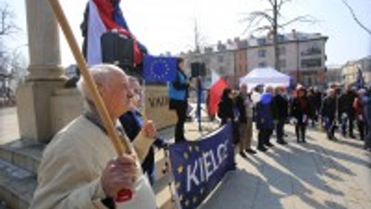 Kilkadziesiąt osób odśpiewało "Odę do radości" przy pomniku Sienkiewicza w Kielcach. Hymn Unii Europejskiej zabrzmiał w niedzielę 25 marca, dokładnie w 61. rocznicę podpisania Traktatów Rzymskich, które wraz z traktatem paryskim uważa się za podwaliny szeroko pojętej integracji na naszym kontynencie. 25.03.2018 11:59
